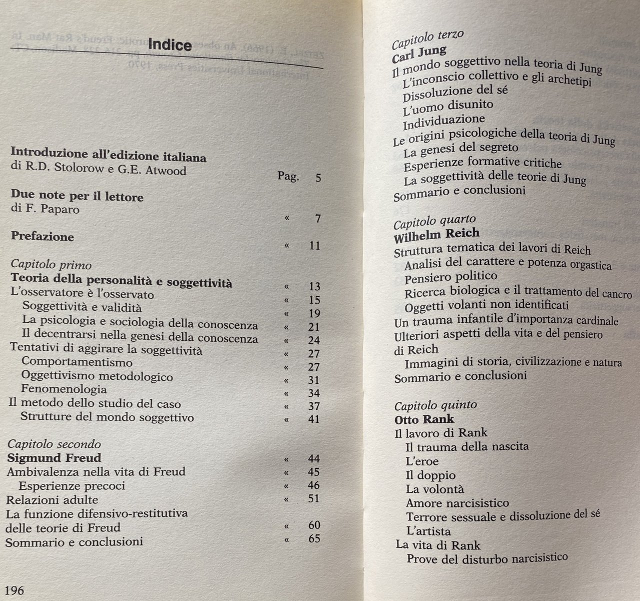 Soggetti: Psicobiografia Eventi Psicologia Psicanalisi Psichiatri Teoria psicanalitica Personalità Mondo soggettivo Analisi psicobiografiche Sigmund Freud Carl Jung Wilhelm Reich Otto Rank Teorie Vita Biografie Clinica Intersoggettività Pensiero psicoanalitico Esperienza Ambivalenza Analisi Archetipi Comportamento biologico Nascita Trauma Struttura caratteriale Bambino Infanzia Inconscio Concetti Critica Interpretazione Contesto Indagine Gesù Jones Conoscenza Heinz Kohut Manichino Martha Metaplasia Madre Metapsicologica Narcisismo Disturbi Natura Nevrosi Oggetto nevrotico Onnipotente Potenza orgastica Energia Orgonica Genitori Paziente Personalità Fenomeni Fenomenologia Problemi Psiche Psicosessuale Rango Realtà Rango Reificazione Relazioni Repressione Segreto Transfert Sessualità Superego Simbolico Taft Terapeutico Contestualismo Patogenesi Perdita Famiglia Opere generali Saggi Libri Vintage fuori catalogo Bibliografia Riferimento Structures Subjectivity Dasein Dottrine metapsicologiche universalizzate Weltanschauung Classici Casi studio Infedeltà Tradimento Suicidio Corazza caratteriale Postura Muscoli Prevenzione Società Condanna morale Gelosia Odio Introversione Estroversione Infanzia Metapsicologia psicoanalitica Sovrastruttura Pulsioni Affettività Corpo Diagnosi Terapia Borderline Scienze sociali Complesso di Edipo Ferenczi Lewis Aron Traumi infantili Depressione Vergogna Senso comune Jürgen Habermas Edmund Husserl Habermas Hyppolite Edith Stein Emmanuel Levinas Maurice Merleau-Ponty Neuroni Specchio Empatia Simulazione Shaun Gallagher Interazione Chomsky Comunicazione Linguaggio non verbale Deutsch Erikson Gadamer Holt Polanyi Jean Piaget Rubinstein Sandler Sartre Jones Holzmann Binswanger Scrittura Vita Esistenza Gestualità Gesti Psychobiography Events Psychology Psychoanalysis Psychiatrists Psychoanalytic Theory Personality Subjective World Psychobiographical Analysis Theories Life Biographies Clinic Intersubjectivity Psychoanalytic Thought Experience Ambivalence Analysis Archetypes Biological Behavior Birth Character Structure Child Infancy Unconscious Concepts Criticism Interpretation Context Investigation Jesus Knowledge Dummy Mother Metapsychological Narcissism Disorders Nature Neurosis Object neurotic Almighty Orgastic Power Orgone Energy Parents Patient Personality Phenomena Phenomenology Problems Psyche Psychosexual Rank Reality Rank Reification Relationships Repression Secret Sexuality Symbolic Therapeutic Contextualism Pathogenesis Loss Family General works Essays Out of print books Bibliography Reference Universalized metapsychological doctrines Classics Case studies Infidelity Betrayal Suicide Character armor Posture Muscles Prevention Society Moral condemnation Jealousy Hatred Introversion Extroversion Childhood Psychoanalytic metapsychology Superstructure Drives Affectivity Body Diagnosis Therapy Social sciences Oedipus complex Depression Shame Common sense Neurons Mirror Empathy Simulation Interaction Communication Non-verbal language Writing Life Existence Gestures