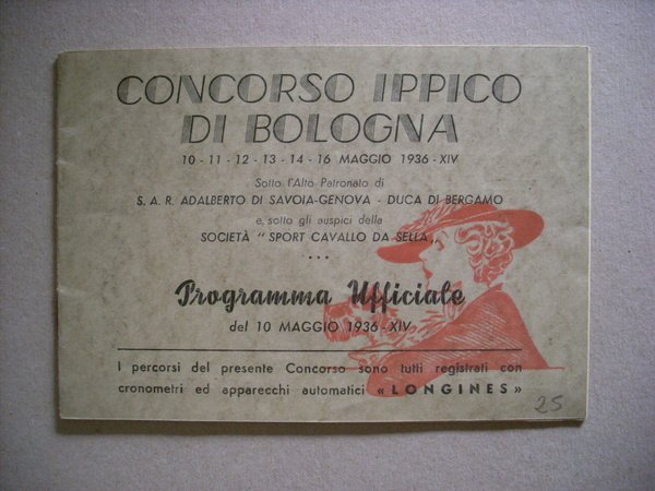 Volume / programma ufficiale "Concorso Ippico di BOLOGNA 1936 - Giardini Margherita" Adalberto di Savoia - Genova