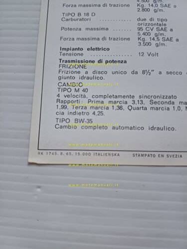 Volvo serie 120 modelli 1965 depliant italiano originale