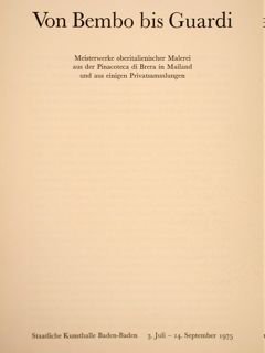 VON BEMBO BIS GUARDI. Meisterwerke oberitalienischer Malerei aus der Pinacoteca di Brera in Mailand und aus einigen Privatsammlungen. Baden - Baden, 3. Juli - 14. September 1975.