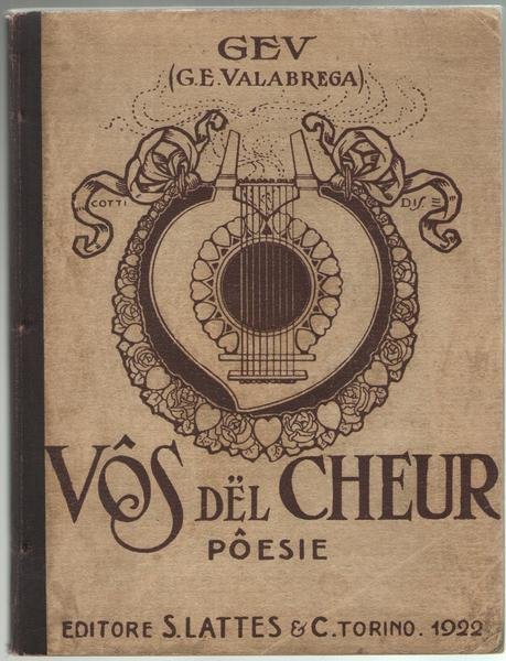 Brossura ed. con dorso in tela muto (apparentemente editoriale), fregio di Cotti sul piatto anteriore, cm16x21, pp 157 (3). Prima edizione. Poesie in dialetto piemontese.
