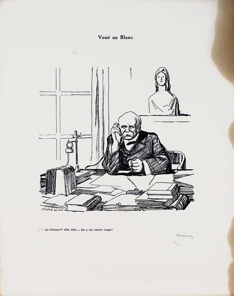 Abel Jules Faivre (Lione 1867 - Nizza 1945) Litografia originale firmata a mano dall'artista.Dimensioni: 56 x 38,5 cmCon certificato di autenticità C.O.A.Ingiallimento laterale come da foto.Esemplare numero 62/250 La raccolta di litografie umoristiche del caricaturista francese Abel Faivre (Lione 1867-Nizza 1945), andata a confluire nel volume Jours de guerre,fu pubblicata in due tomi tra il 1915 e il 1919. Con il procedere del conflitto, l'opinione pubblica di tutti i paesi coinvolti,che aveva dapprima affrontato tale evento con ottimismo, mutò rapidamente opinione sino a considerare la guerra, senza mezzi termini,come un avvenimento rovinoso. In tale contesto, le vignette satiriche di guerra possedevano un potente effetto catartico,adempivano un ruolo sociale irrinunciabile, fornendo una valvola di sfogo all’incombere dal più cupo pessimismo. Abel Jules Faivre (Lyon 1867 - Nizza 1945) Originale Lithographie vom Künstler von Hand signiert.Abmessungen: 56 x 38,5 cmMit Echtheitszertifikat C.O.A.Seitliche Vergilbung wie auf dem Foto.Kopieren Sie die Nummer 62/250 Die Sammlung humorvoller Lithographien des französischen Karikaturisten Abel Faivre (Lyon 1867-Nizza 1945), die in den Band Jours de guerre floss,es wurde zwischen 1915 und 1919 in zwei Bänden veröffentlicht. Im Verlauf des Konflikts wurde die öffentliche Meinung in allen beteiligten LändernWer dieses Ereignis anfangs mit Optimismus konfrontiert hatte, änderte schnell seine Meinung, um den Krieg ohne Zweifel zu betrachten.wie ein ruinöses Ereignis. In diesem Zusammenhang hatten die satirischen Kriegskarikaturen eine starke kathartische Wirkung.Sie erfüllten eine unverzichtbare soziale Rolle und bildeten ein Entlastungsventil gegen den dunkelsten Pessimismus. Abel Jules Faivre (Lyon 1867 - Nice 1945) Lithographie originale signée à la main par l'artiste.Dimensions: 56 x 38,5 cmAvec certificat d'authenticité C.O.A.Jaunissement latéral comme sur la photo.Copie numéro 62/250 La collection de lithographies humoristiques du caricaturiste français Abel Faivre (Lyon 1867-Nice 1945), qui allait se fondre dans le volume Jours de guerre,il a été publié en deux volumes entre 1915 et 1919. À mesure que le conflit progressait, l'opinion publique de tous les pays impliqués,qui avait d'abord fait face à cet événement avec optimisme, a rapidement changé d'avis pour envisager la guerre, en termes non équivoques,comme un événement ruineux. Dans ce contexte, les caricatures de guerre satiriques ont eu un puissant effet cathartique,ils remplissaient un rôle social indispensable, fournissant une soupape de décharge du pessimisme le plus sombre. Abel Jules Faivre (Lyon 1867 - Nice 1945) Original lithograph signed by hand by the artist.Dimensions: 56 x 38.5 cmWith certificate of authenticity C.O.A.Lateral yellowing as in the photo.Copy number 62/250 The collection of humorous lithographs by the French caricaturist Abel Faivre (Lyon 1867-Nice 1945), which went to flow into the volume Jours de guerre,it was published in two volumes between 1915 and 1919. As the conflict progressed, public opinion in all the countries involved,who had initially faced this event with optimism, quickly changed his opinion to consider the war, in no uncertain terms,like a ruinous event. In this context, the satirical war cartoons had a powerful cathartic effect,they fulfilled an indispensable social role, providing a relief valve from the darkest pessimism.