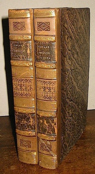 8vo (cm. 21), 2 Voll., 3 cc.nn. (occhietto, frontis. con piccola veduta dell’Etna, Errata), 541 pp. con 3 tavv. f.t.; 3 cc.nn., 462 pp. con una tav. f.t. Legature coeve in mz. pelle con nervi, titolo e ricchi fregi a secco e in oro. Tagli marmorizzati. Ottimo esemplare.