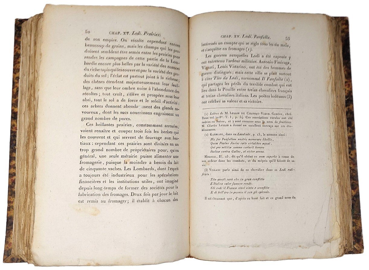 >in-8 gr., 2 tomi in un volume, pp.(8), 392; (4), 371. Bella legatura del tempo mezza pelle,dorso a nervi con fregi e titolo in oro. Dettagliata relazione del viaggio in Lombardia nel primo ottocento, ricca di notizie storiche, geografiche, topografiche, artistiche, biografiche, ecc., sulle localita visitate. Corredata di un indice dei XXVI capitoli in cui è suddivisa e di un esteso indice dei nomi. Ottimo esemplare, a pieni margini, di opera pregiata non comune. Predari, Bibliogr. Milanese, pag. 16.