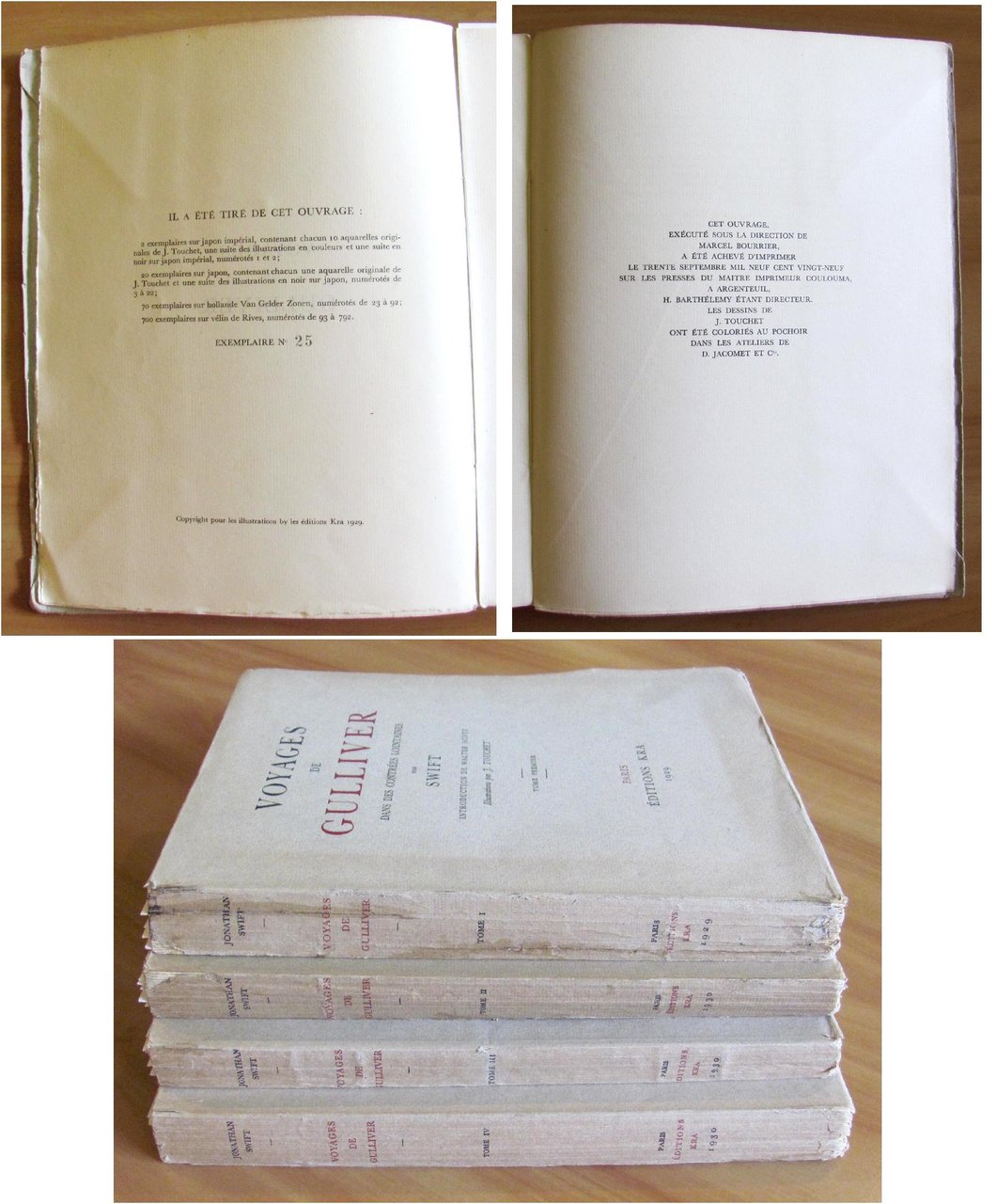 Opera completa in 4 Volumi. 1 tavola f.t. in ciascun volume e moltissime illustrazioni n.t., anche a piena pagina, tutte a pochoir di F. Touchet. Editions Kra - Paris, 1929-30. Tiratura Limitata di 70 esemplari sur hollande Van Gelder Zonen de 23 à 92, nostro N. 25. Brossure editoriali con ali. Il Tome Troisième è ancora intonso. 19,5x25; pp.237+169+157+207. Rarissimi e in Ottimo stato. , Ottimo (Fine)