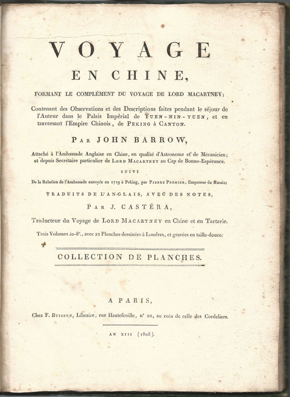 Voyage en Chine. Formant le Complément du Voyage de Lord Macartney.