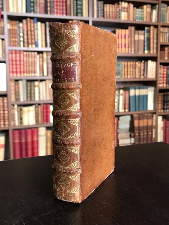<span style="font-style: normal;">2 parti in 1 volume in-12° (cm. 16,4), legatura coeva in piena pelle con titolo e fregi in oro al dorso (mancanza della cuffia inferiore); tagli spruzzati; pp. [32] 316 [2] XIV 76 [16] in buono stato con 4 tavole illustrative in rame f.t. di cui una ripiegata (accampamento sul Monte Carmelo davanti alla città di Haifa); sporadiche fioriture. Edizione originale postuma del libro di viaggi compiuti nel 1664 in Medio Oriente dal diplomatico marsigliese, edito da </span>Jean de la Roque. Interessante la<span style="font-style: normal;"> descrizione delle tribù nomadi. «The first part of this work is an account of d'Arvieux's mission to the Arabs of Mt. Carmel in 1664, together with a general discussion of the customs of the nomadic Arabs. The second part, </span><i>Description Générale de l'Arabie</i>, has been translated for the first time into French by the editor La Roque from the Arabic of Ismael Abulfeda» [Blackmer 50]. cfr. Atabey 38. Esemplare molto buono. (SD4)