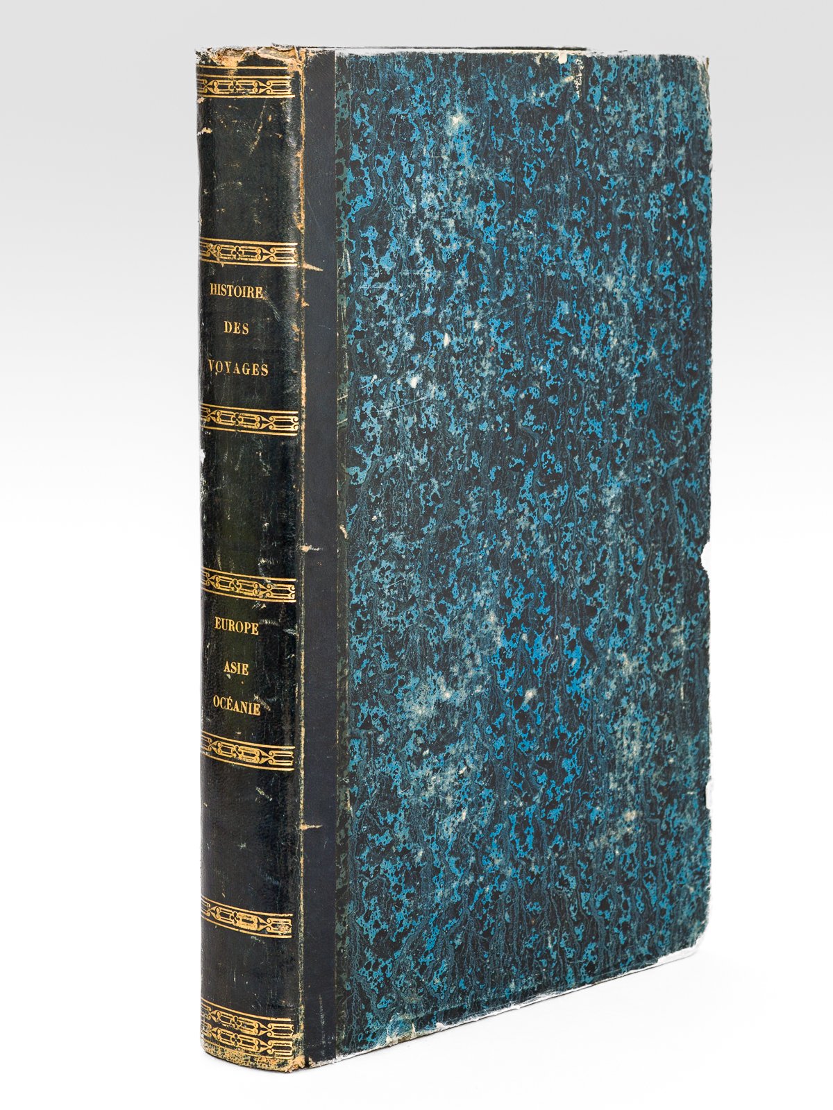 Illutrés par Bocourt et Ch. Mettais, 1 vol. in-4 reliure de l'époque demi-basane bleue, Chez Bry Aîné, s.d. [ circa 1854 ], 48-32-32-64-64-32-32-32-32-32-32-48-32-160 pp. avec 16 planches hors texte en couleurs : [ Voyages en Asie - Voyages en Afrique - Voyages en Europe - Voyages en Amérique - Voyages autour du monde et en Océanie :] Walsh - Hommaire de Hell - Quin- Gamba - Anatole Demidoff - Dubois de Montpéreux Capell Brooke - Timkowski - Burckhardt - Finlayson - Fraser - Heber - Burnes - Bougainville - La Pérouse - Baudin - Freycinet - Jacques Cook Ce volume, qui recueille des récits de voyage des grands explorateurs, est illustré de 16 belles planches en couleurs. Etat satisfaisant (usures en coupes et coiffes, accroc sans manque au dernier feuillet, des rouss.)