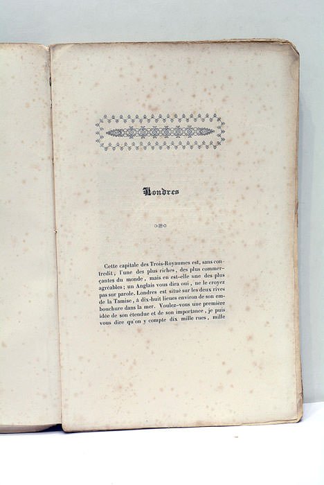 in-8. 3ff. 232pp. Broché, couverture imprimée. Taches sur la couverture qui se détache légèrement. Exemplaire non rogné. Des rousseurs. Première édition rare de ce guide de voyage consacré à quelques villes et sites touristiques de l'Angleterre, l'Ecosse et l'Irlande. Il contient certains chapitres sur les traditions et croyances populaires de ces peuples, comme le phénomène appelé Will-o-the-wisp ou la Saint-Valentin.