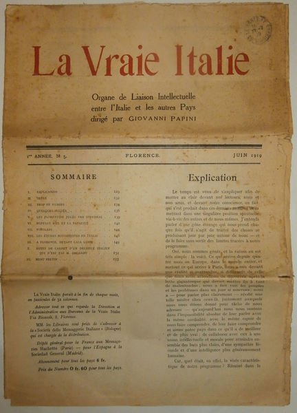 VRAIE ITALIE LA. Organ de liaison intellectuelle entre l’Italie et les autres pays.