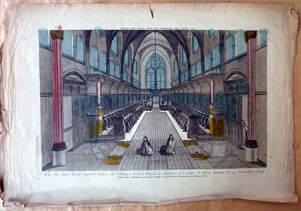 Vue du Coeur de la Superbe église de L'Abbaye de Port Royal des Champs à 5 lieues de Paris, détruite le 29 novembre 1709.