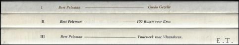 Hardcovers, Poezie en bloemlezing in 13 talen , 305 x 250 mm, Nieuwstaat, in cassette, NL / FR / ENG / D / ITA / SPA / DEN / PORT / ROE / HON / GRI / LAT / ESP; . Vuurwerk voor Vlaanderen : 184 pag. illustr. in z/w / 100 Rozen voor Eros : 148 pag. illustr. in z/w / Guido Gezelle : 112 pag. illustr. in z/w;