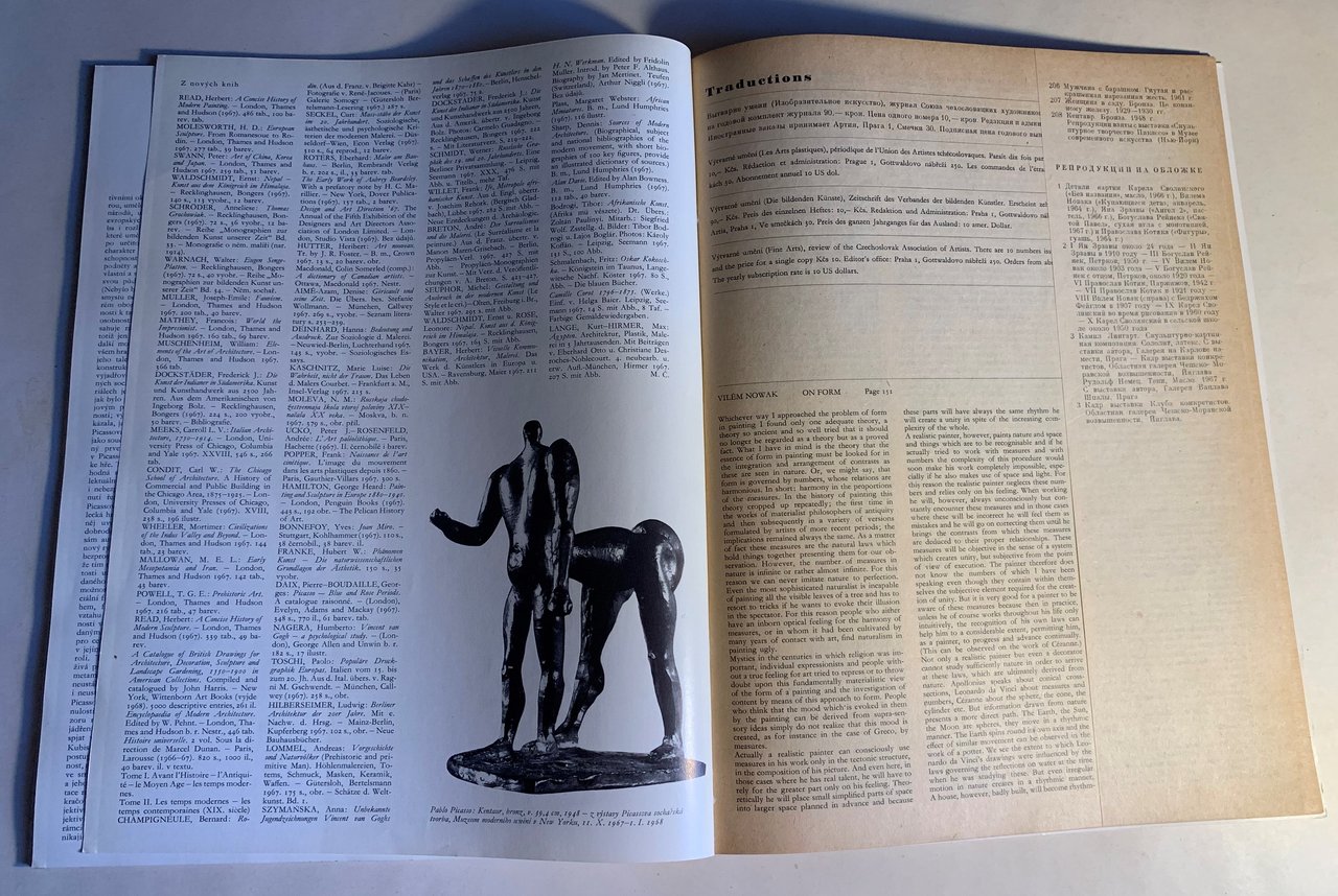 I ed.. N. 4 68 del periodico dell'Unione degli artisti cecoslovacchi (Svaz českých výtvarných umělců). Redazione e amministrazione: Praga, Gottwaldovo nábřeží 250. Testo in ceco con traduzioni in russo, francese, tedesco e inglese. IV/ 149-208+(10) ripiegate in carta leggera con traduzioni in russo, francese, tedesco e inglese=70/ brossura in cartoncino patinato bianco con grafica in nero e rosso e con illustrazioni in b/n ai piatti. Illustrazioni in b/n nel testo e f.t. e a colori f.t.. Obálka a grafická/ Copertina e grafica Stanislav Kolíbal a/ e Jiří Schmidt. Stato buono (usura della copertina - copertina e pagine lievemente brunite).