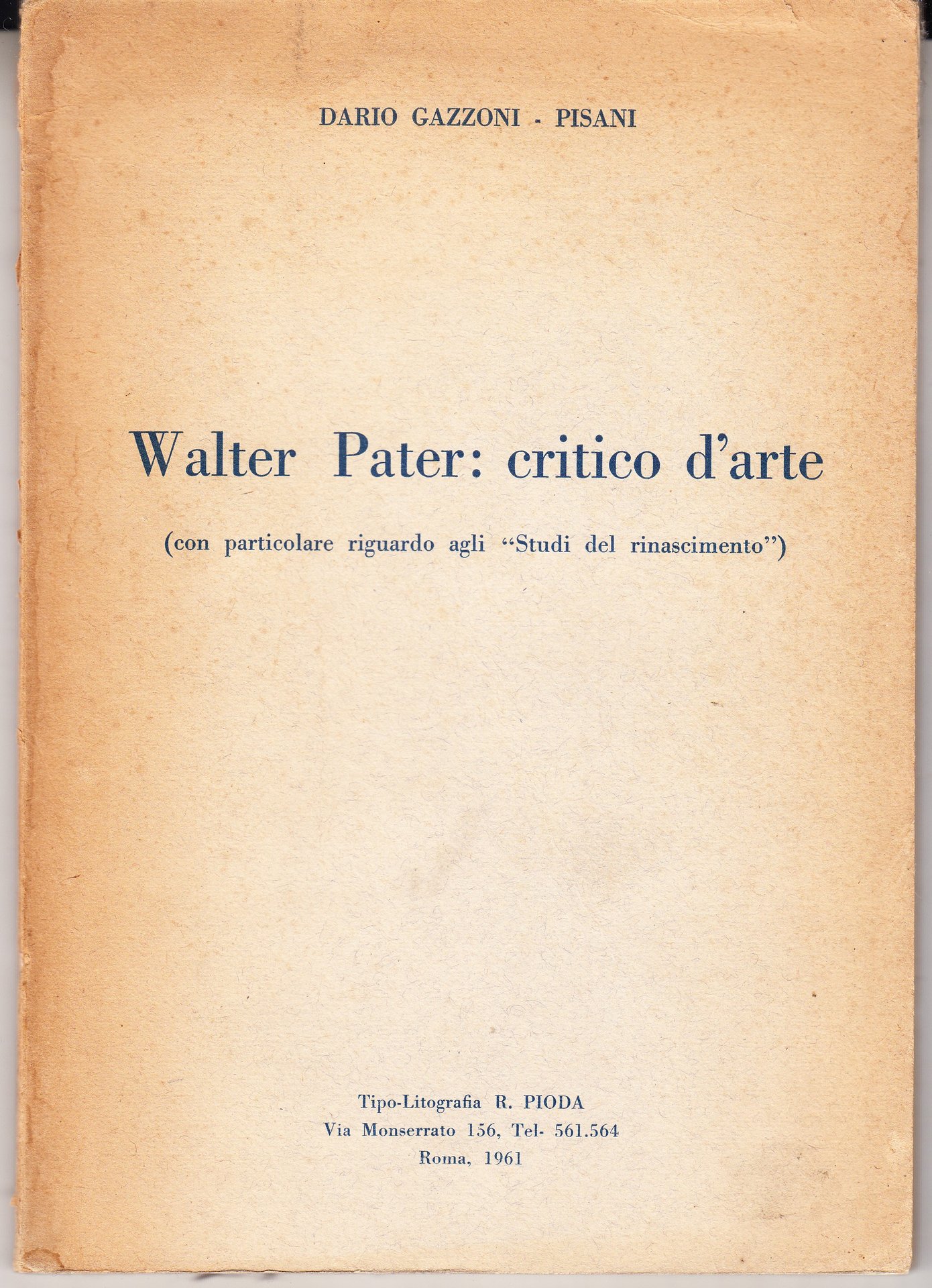 Walter Pater: critico d'arte (con particolare riguardo agli Studi sul Rinascimento