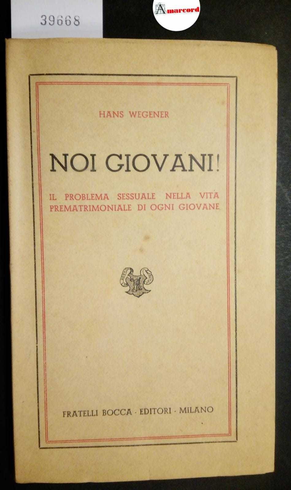 Wegener Hans Wegener Hans, Noi giovani! Il problema sessuale nella vita prematrimoniale di ogni giovane, Bocca, 1944?. 1944?, Bocca italiano, in ottavo 151 39668