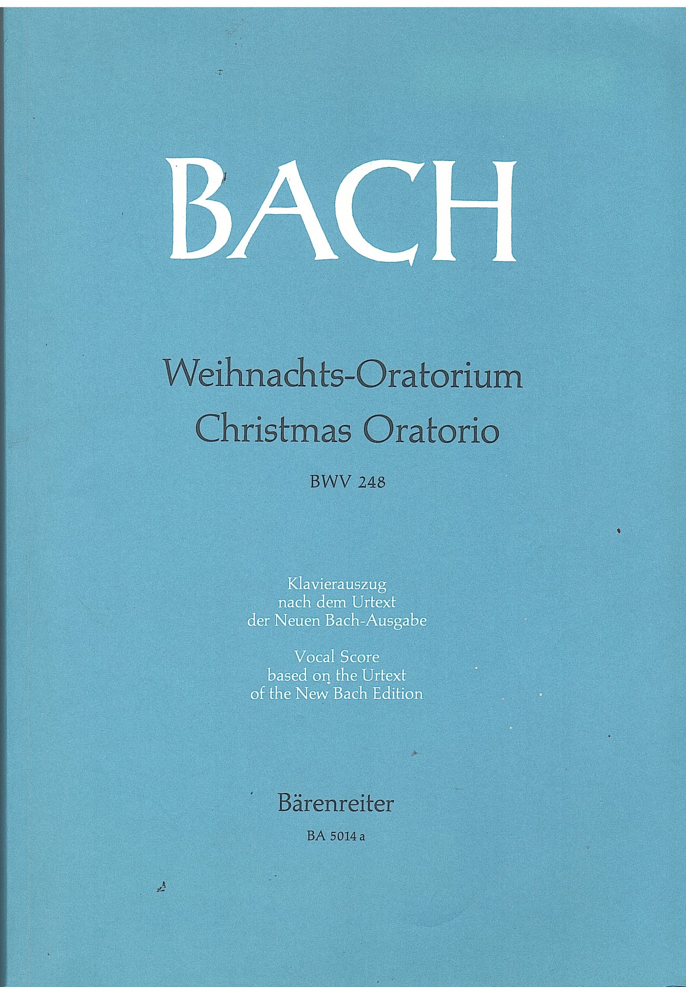 19X27, brossura, Barenreiter, Spartito, Klavierauszug nach dem Urtext derNeuen Bach-Ausbage. Vocal Score based on the Urtext of the New Bach Edition. 234 pp spartito, con nome di appartenenza in anteprima e incollati inviti concerti su interno copertina. buone condizioni generali, qualche appunto a matita leggero.