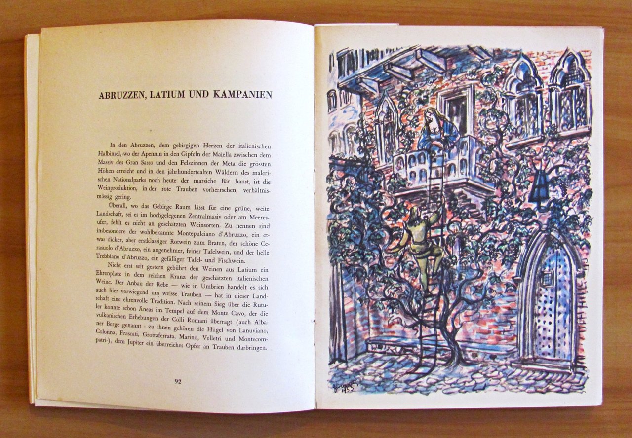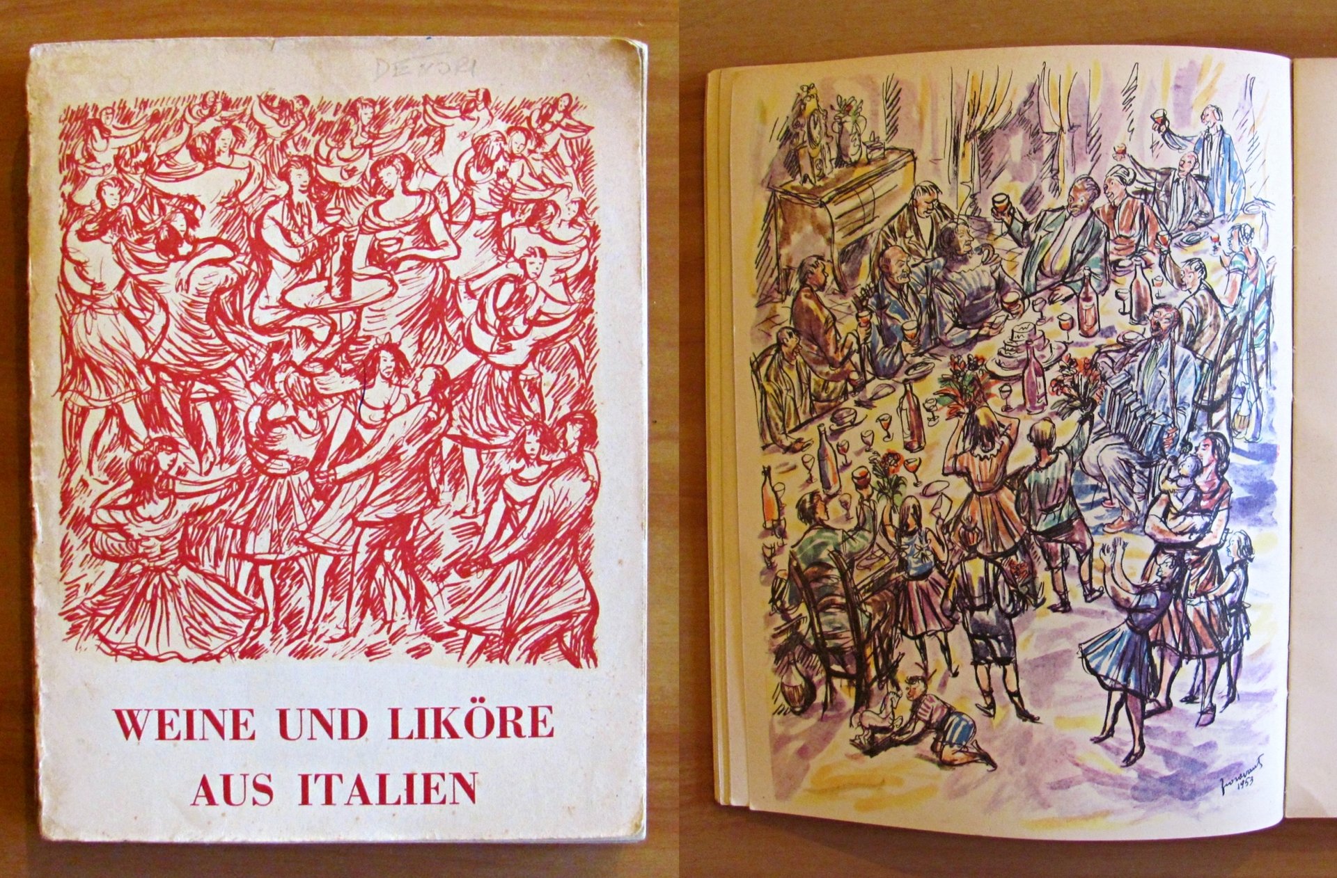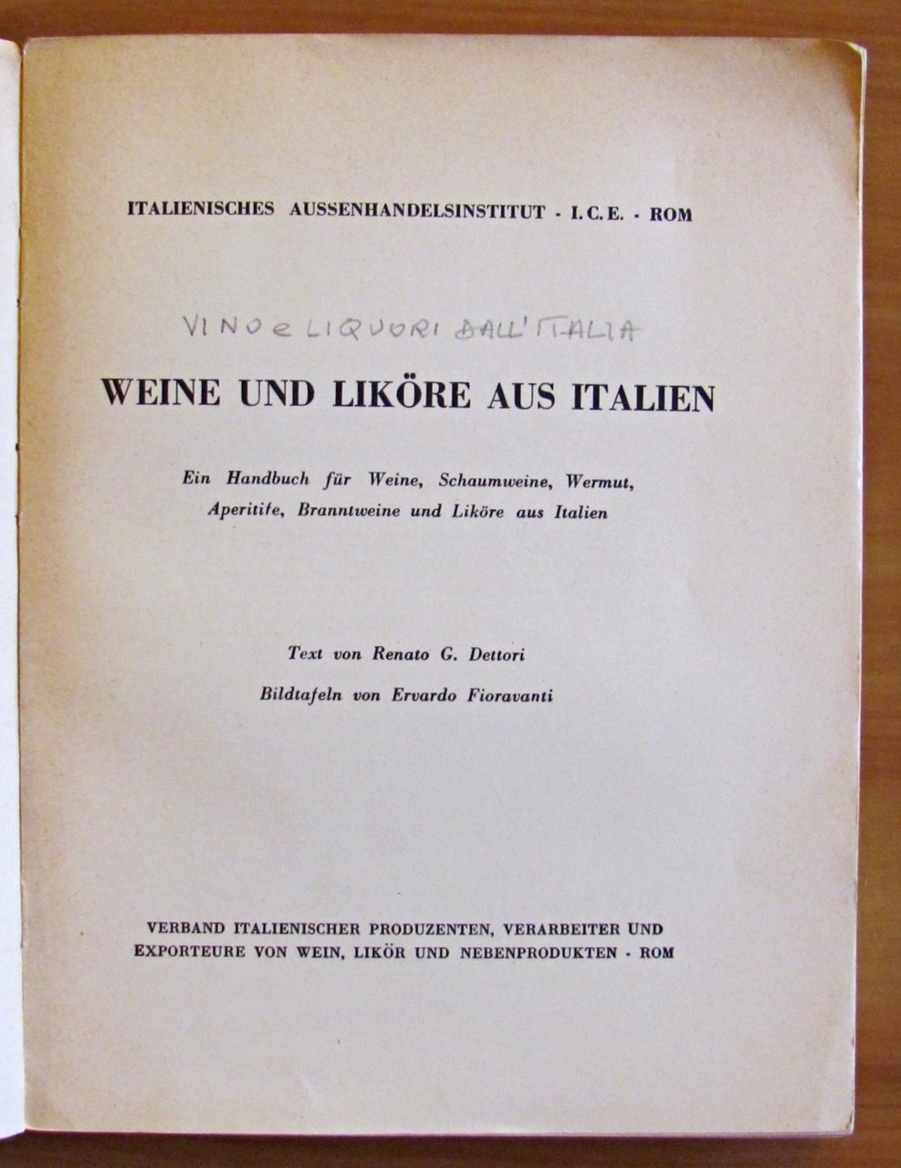 Vini e Liquori dall'Italia. Una guida ai vini, spumanti, Vermouth, aperitivi, grappe e liquori d'Italia. 40 tavole a colore f.t. con didascalie sul retro in Inglese, Tedesco e Italiano di Ervardo Fioravanti. Italienisches Aussenhandelsintitut - Roma, 1953. Brossura editoriale con usure e mancanze al dorso, peraltro interno freschissimo al dorso. 19x24,5; pp.169+XII. RARO e in BUONISSIMO STATO , Molto buono (Very Good)
