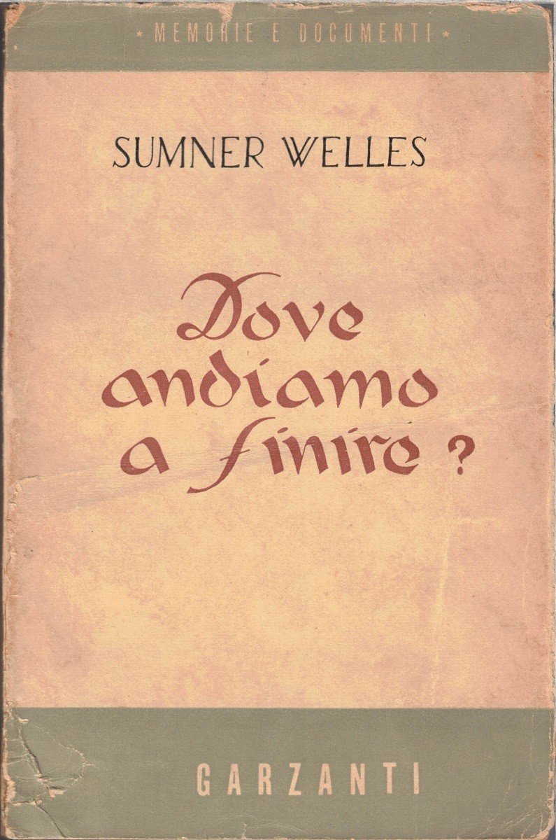 Sumner Welles, Dove andiamo a finire?, Garzanti, s.l. (ma stampato a Cernusco sul Naviglio, presso la tip. Garzanti) 1947, prima ed., pp. 548, cm 21, br. ed. Collana Memorie e documenti. Titolo originale: Where are we heading. Traduzione di Ottavio Barié. Al frontespizio, firma d’appartenenza e timbro: Democrazia Cristiana – Bari – Sezione Japigia. Numero progressivo di classificazione a margine dell’occhiello. Tracce d’uso alla brossura, uniforme brunitura della carta, per il resto e nel complesso buon esemplare, con interno ben tenuto e di piena fruibilità.