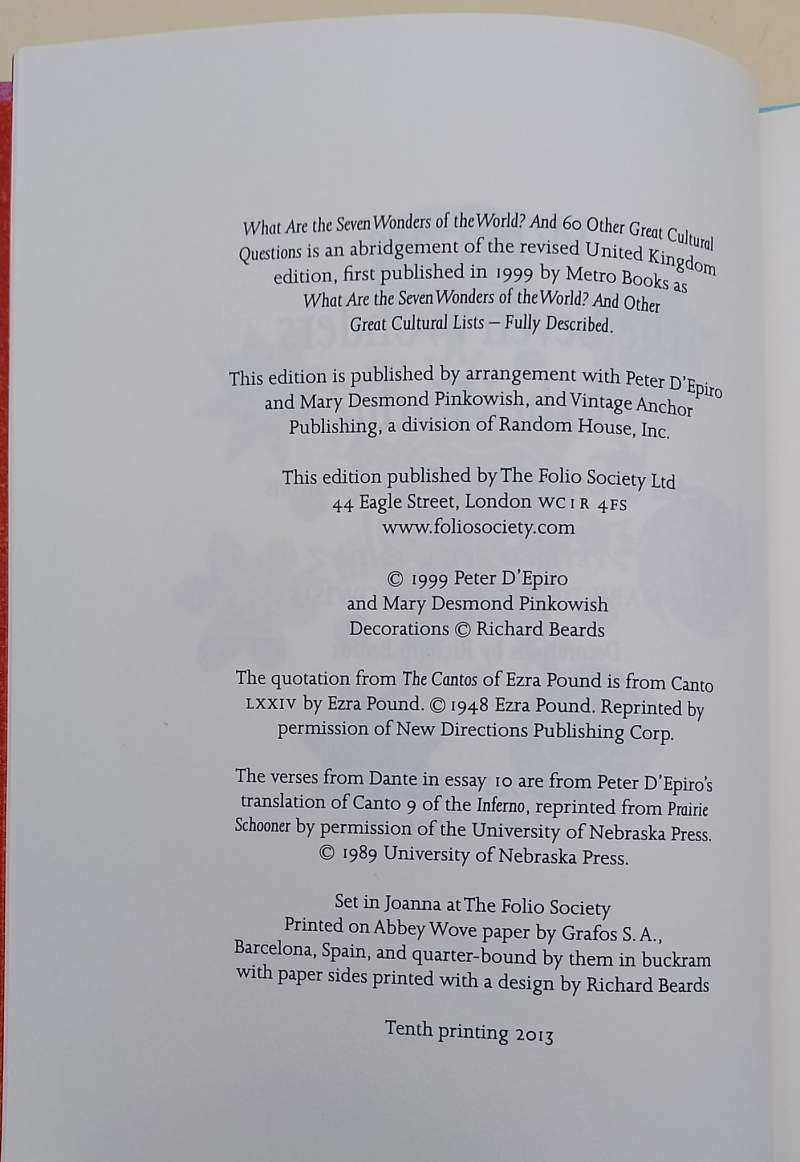WHAT ARE THE SEVEN WONDERS OF THE WORLD?- AND 60 OTHER CULTURAL QUESTIONS( 2005)