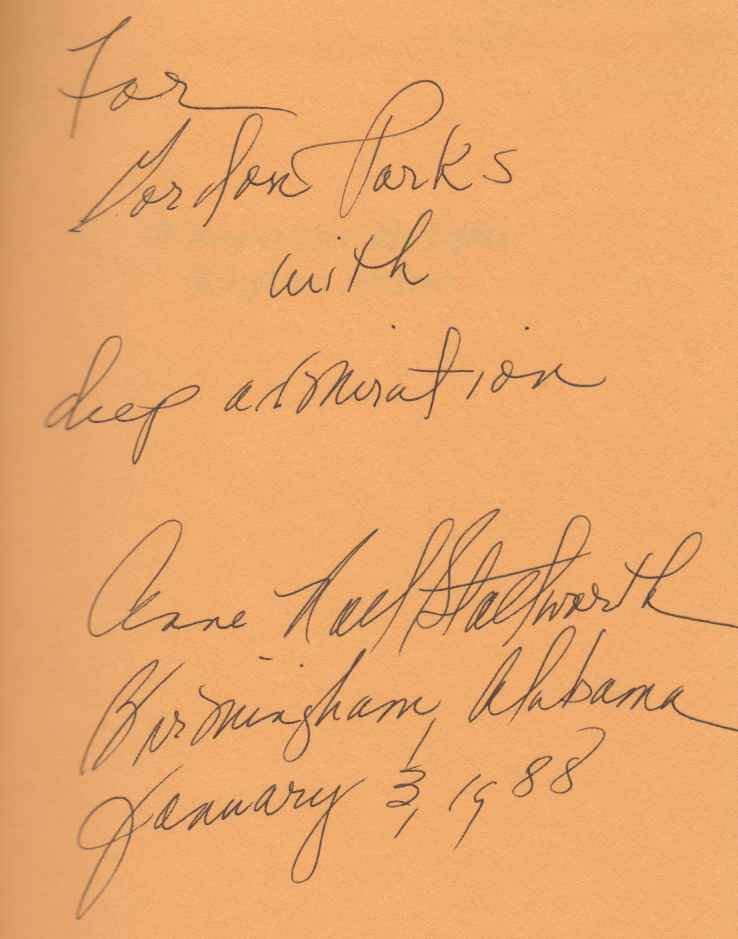 Nicely INSCRIBED by the author on front free endpaper to the famous photographer Gordon Parks, dated January 3, 1988; 8vo
