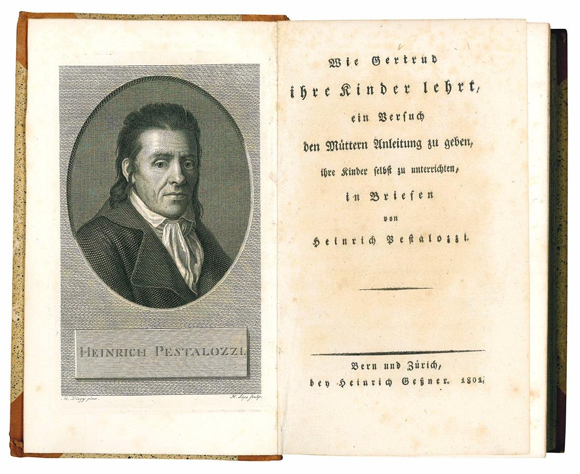 PRIMA EDIZIONE. Pestalozzi studiò a Zurigo sotto Breitinger e Bodmer. Partecipò con Füssli e Lavater al gruppo dei patrioti che si raccoglieva intorno Bodmer, «ispirandosi alle idee del Rousseau e all'ideale d'un moralismo stoico e ribelle e d'un patriottismo democratico». Sciolto il gruppo per motivi politici, troncò gli studi e si dedicò all'agricoltura, comprando un fondo presso Brugg. Le nuove esperienze di vita rivelarono al Pestalozzi che «ogni riforma sociale-economica presupponeva, per essere efficace, un'educazione del popolo destinata a dargli dignità morale e a renderlo atto ad un lavoro intelligente e proficuo».