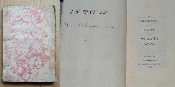 *WIELAND CHRISTOPH MARTIN. La Salamandre et la Statue par Wieland. Copia autografa dall'autore.