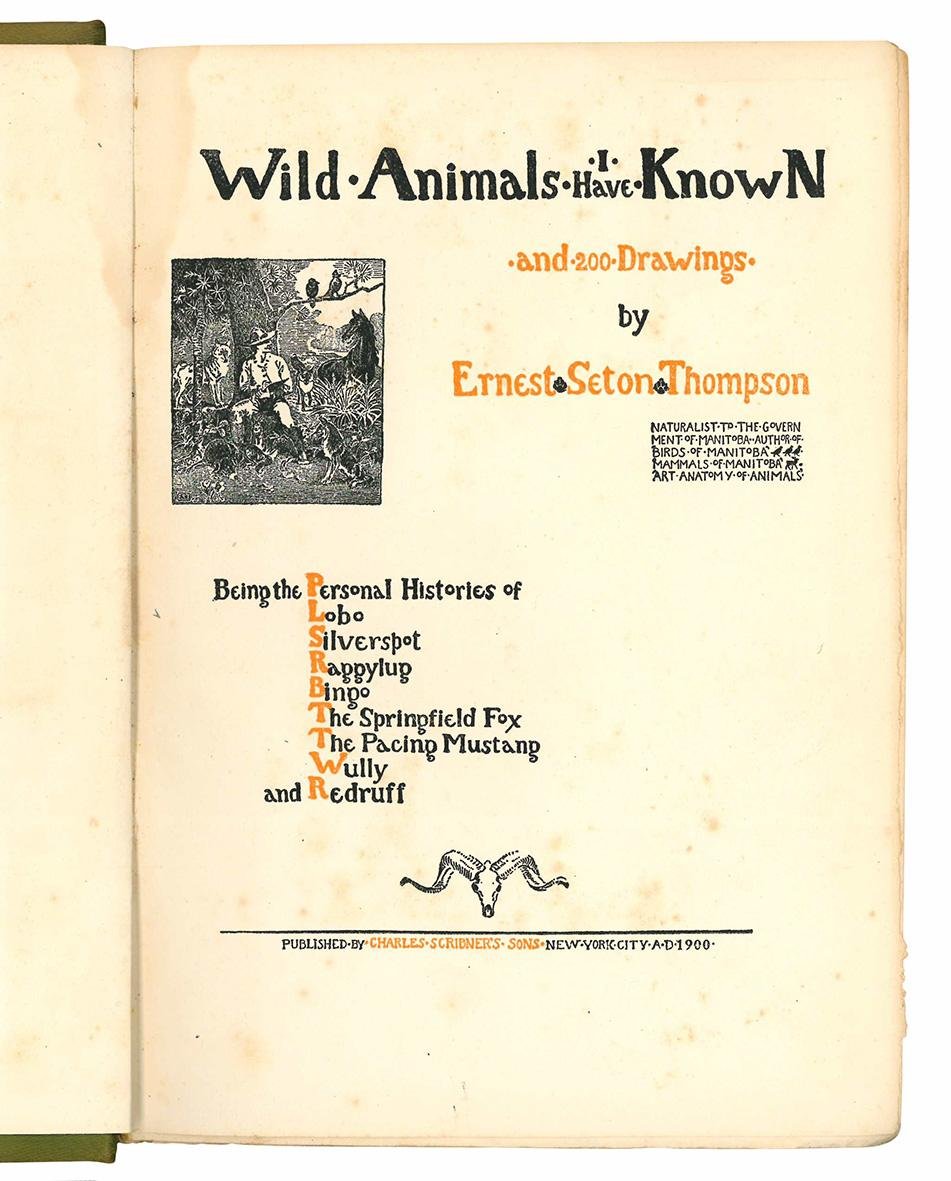 Wild animals i have known and 200 drawings, by Ernest Seton Thompson ... being the personal histories of Lobo, Silverspot, Raggylup, Bingo, the Springfield fox, the Pacing mustang, Wully and Redruff.