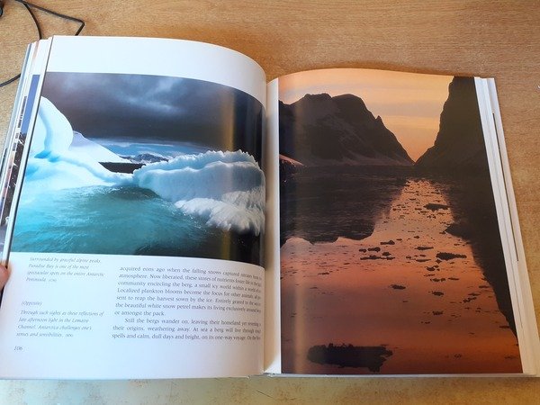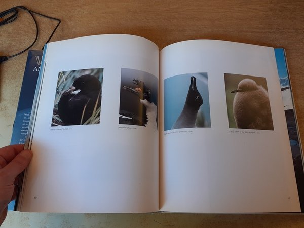 Volume fotografico in lingua inglese dedicato all'Antartico (1990), ricchissimo di immagini a colori.