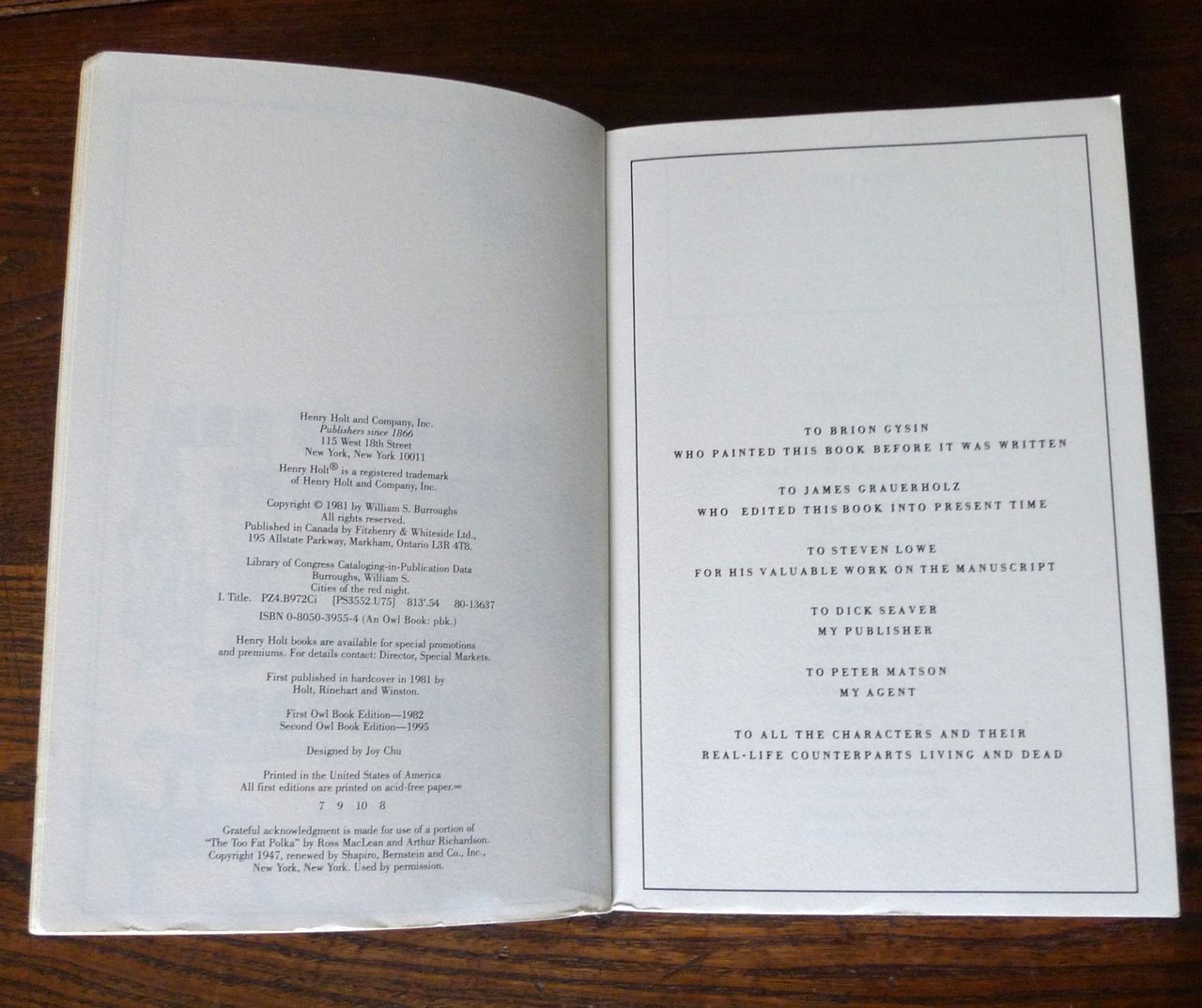 William S. Burroughs,CITIES OF THE RED NIGHT,1995 Henry Holt