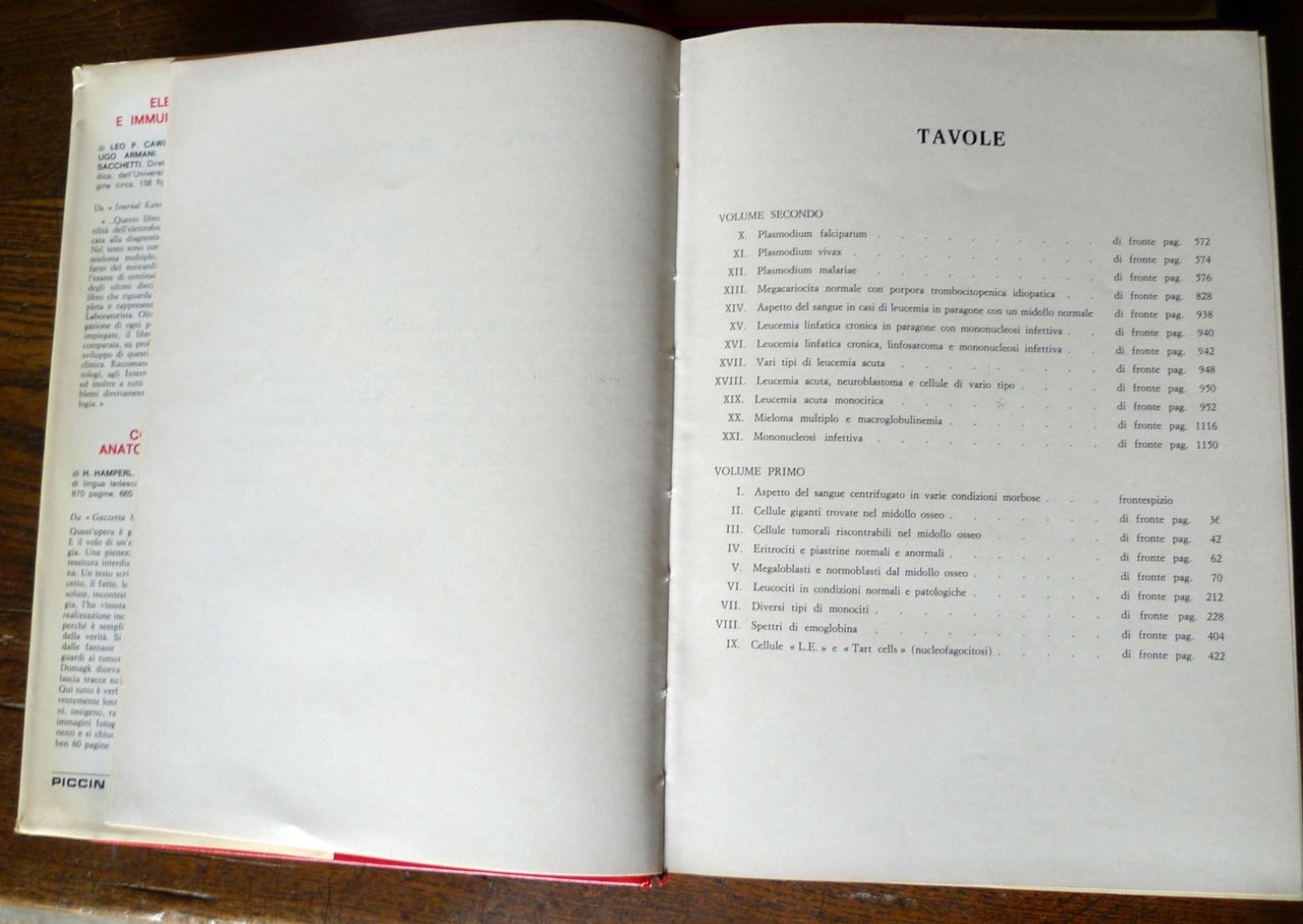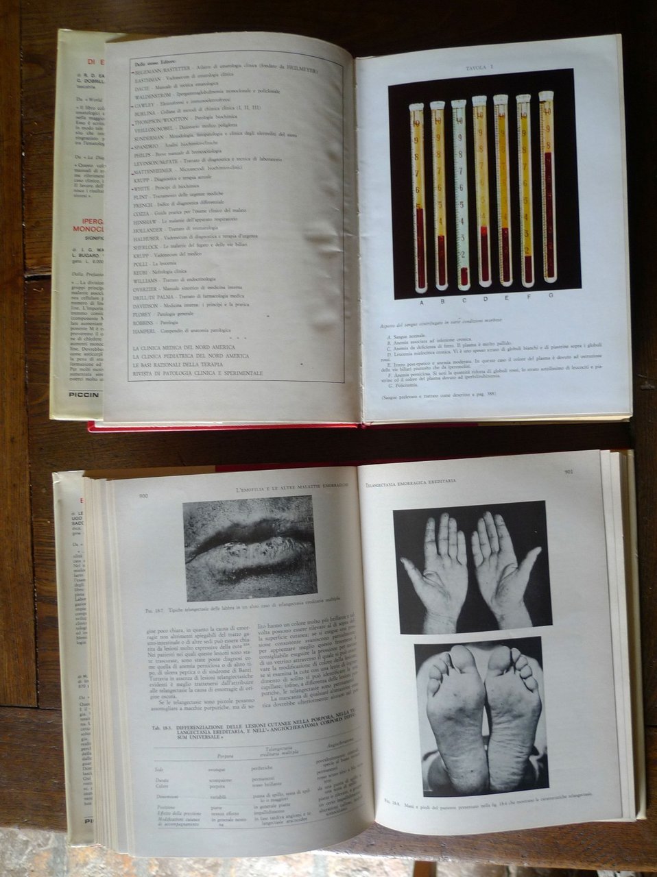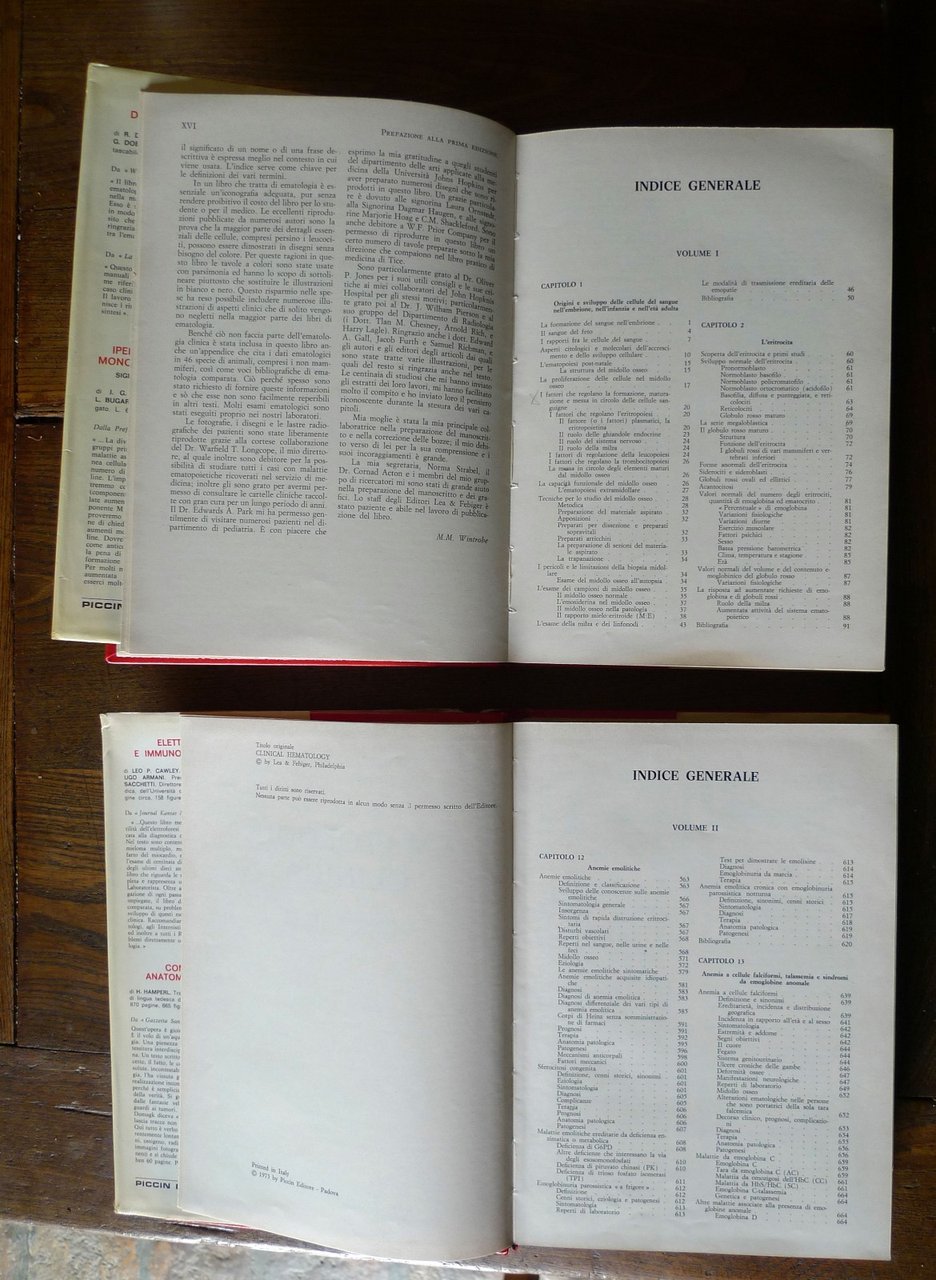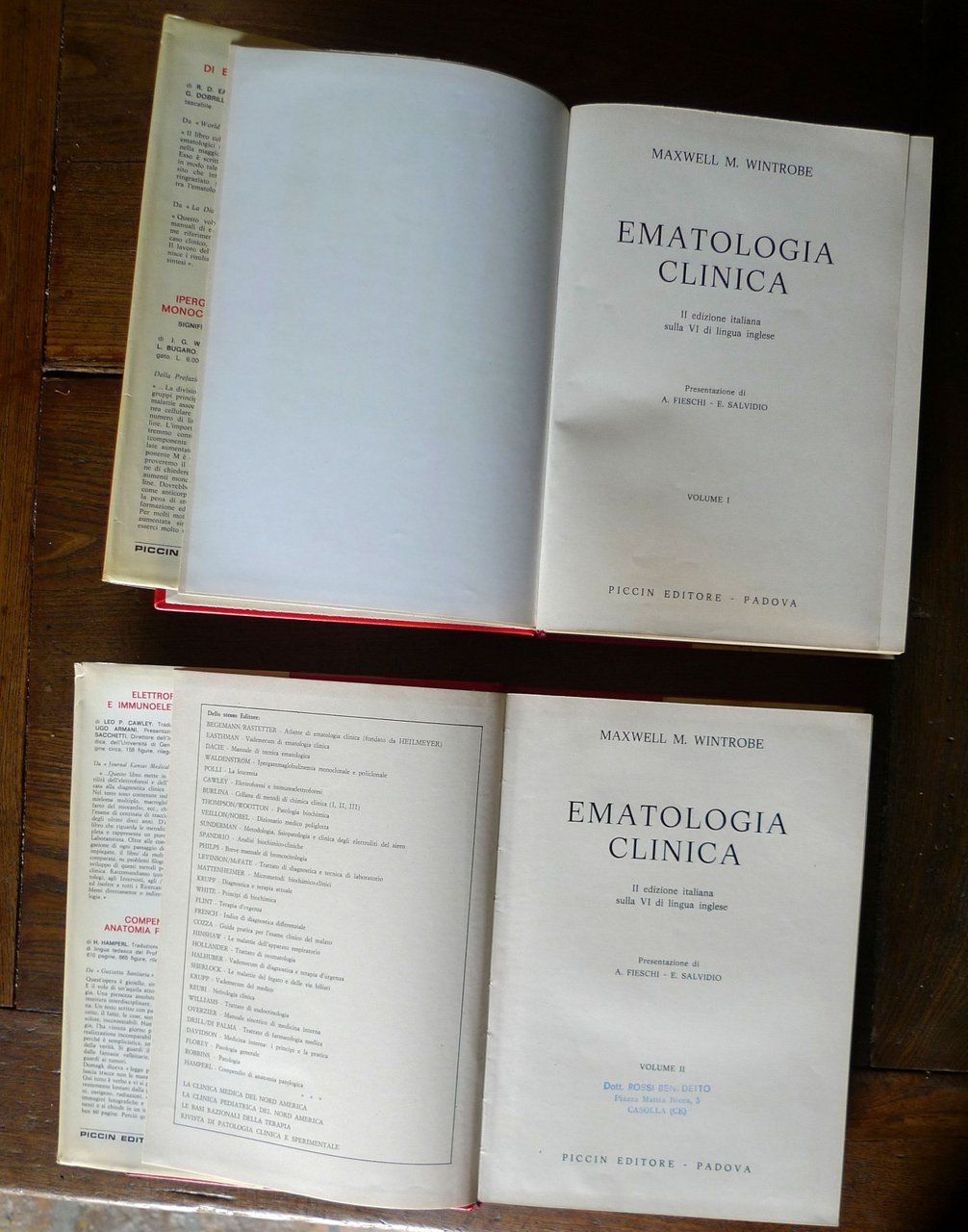 Maxwell M. Wintrobe,EMATOLOGIA CLINICA.II edizione italiana sulla VI di lingua inglese.Presentazione di A. Fieschi - E. Salvidio.VOLUME I - VOLUME II[2 VOLUMI, OPERA COMPLETA].Piccin Editore, Padova 1973,copertina rigida, rilegatura in similpelle,sovraccoperta, 25x18 cm., pp.XXVII-X-1201,illustrazioni in bianco e nero nel testoe a colori su XXI tavole fuori testo,peso: kg.3,5cod.9552CONDIZIONI DEI LIBRI: molto buone,strappetti ed imperfezioni alle sovraccoperte,timbro di appartenenza alle prime pagine,VOL.I: macchie lla copertina in similpelle,VOL.II: strappetto alla copertina in similpelle,poche sottolineature a matita