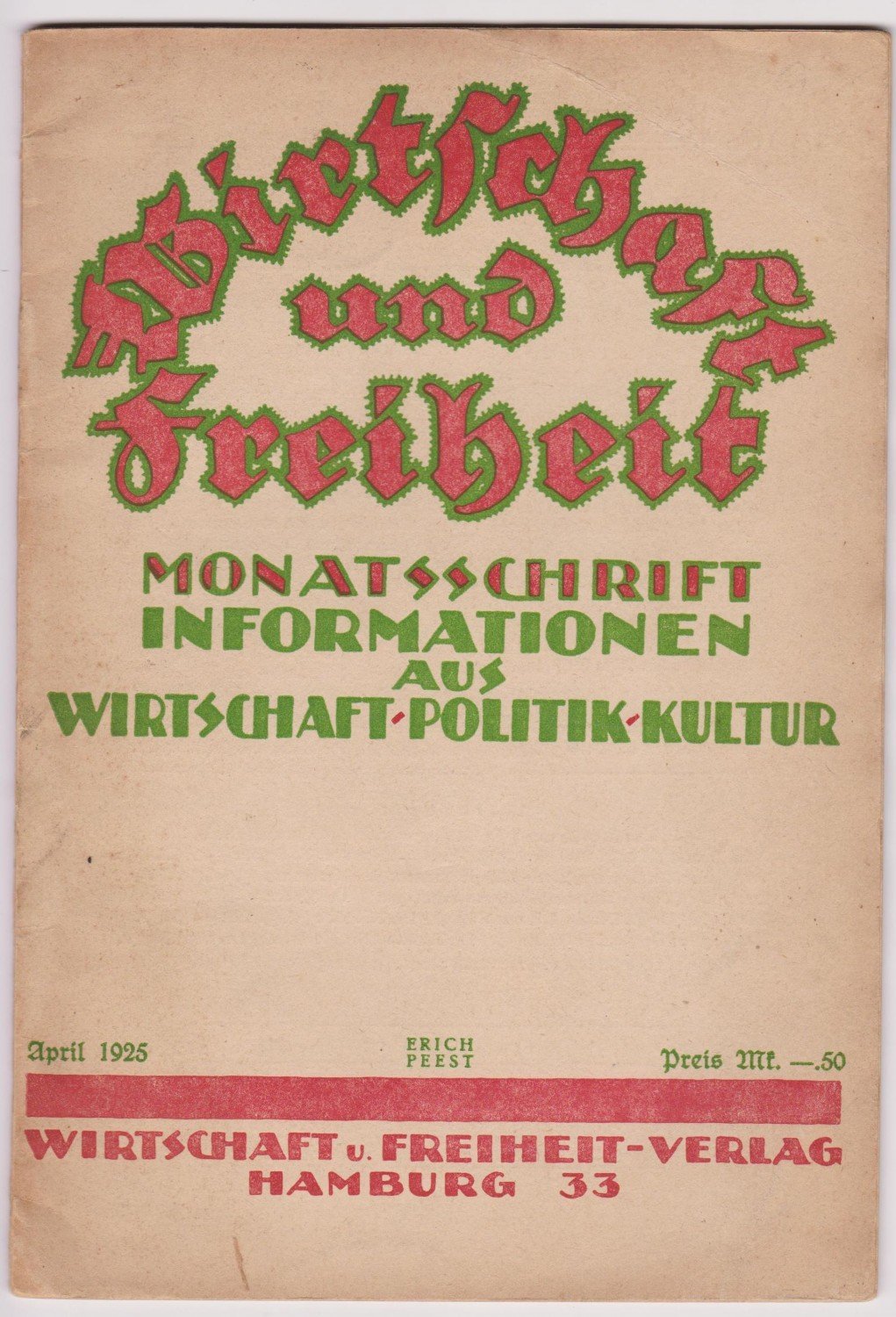 Wirtschaft und Freiheit. Heft 4. April 1925.