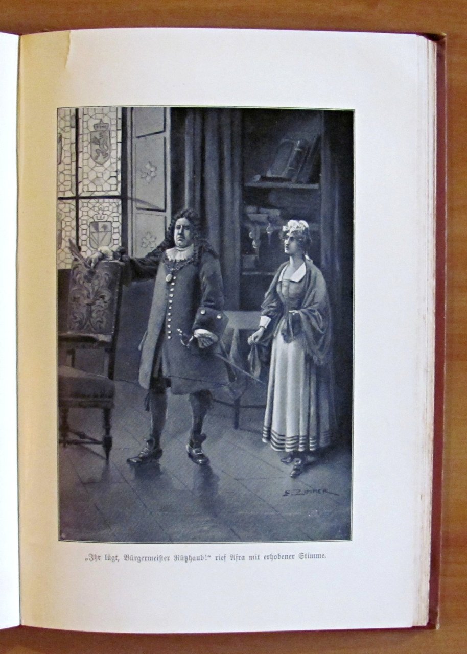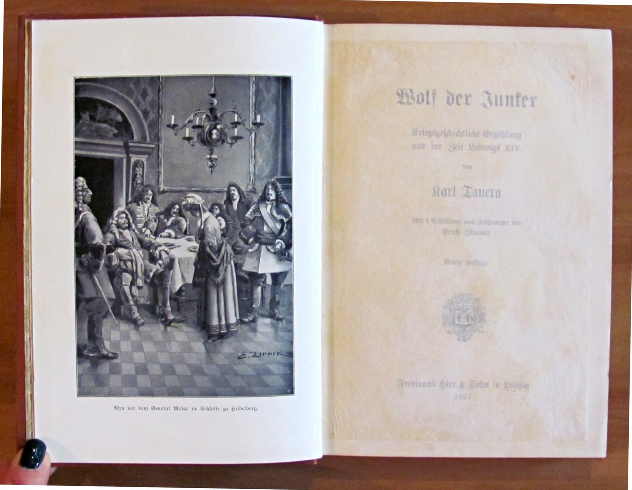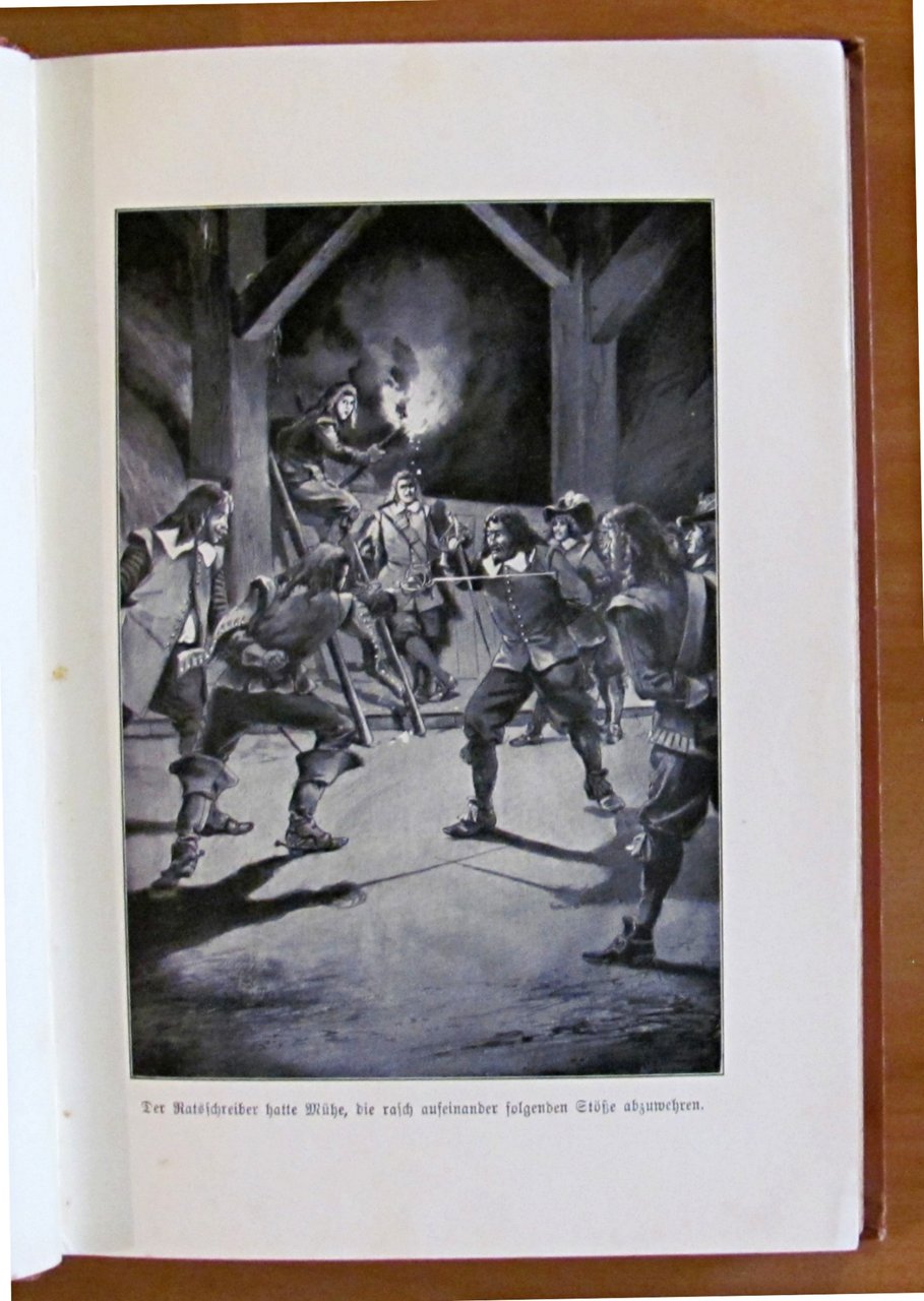 Lupo lo scudiero (?) Storia della guerra dal tempo di Luigi XIV. Con 8 immagini basate sui disegni di Ernst Zimmer. 8 tavole in b/n f.t. di cui una protetta da velina. Ed. Hirt & Sohn - Leipzig, 1907. Tela editoriale con dedica del tempo in antiporta. 16x23; pp.176+16. OTTIMO STATO , Ottimo (Fine)