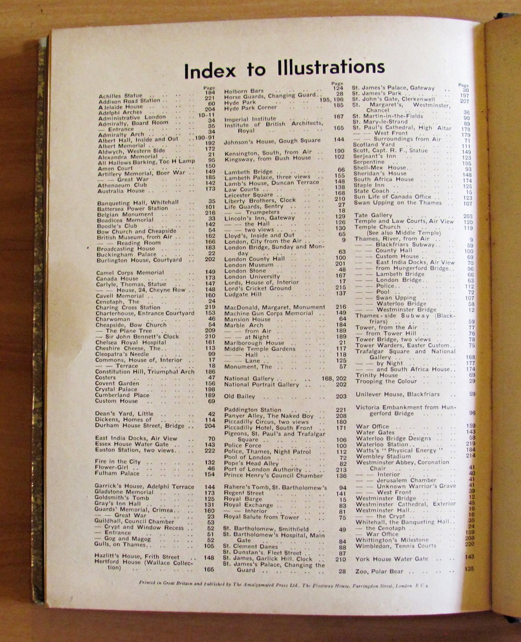 The World's Greatest City Described by its Best Writers and Pictured by its Finest Photographers. La più grande città del mondo descritta dai suoi migliori scrittori e fotografata da suoi più grandi fotografi. 205 splendide foto in b / n a piena pagina ante - retro riprodotte in photogravure. Publ. by The Amalgamated Press Ltd - London, s.d. ma 1930 ca. Cartonato editoriale in mezza tela. Lievi scrostature, come da foto, dell'argentatura delle copertine. Dedica del tempo, datata 1935 all'occhietto. 22,5x29; pp.224. Molto Raro, Ottimo stato. , Molto buono (Very Good)