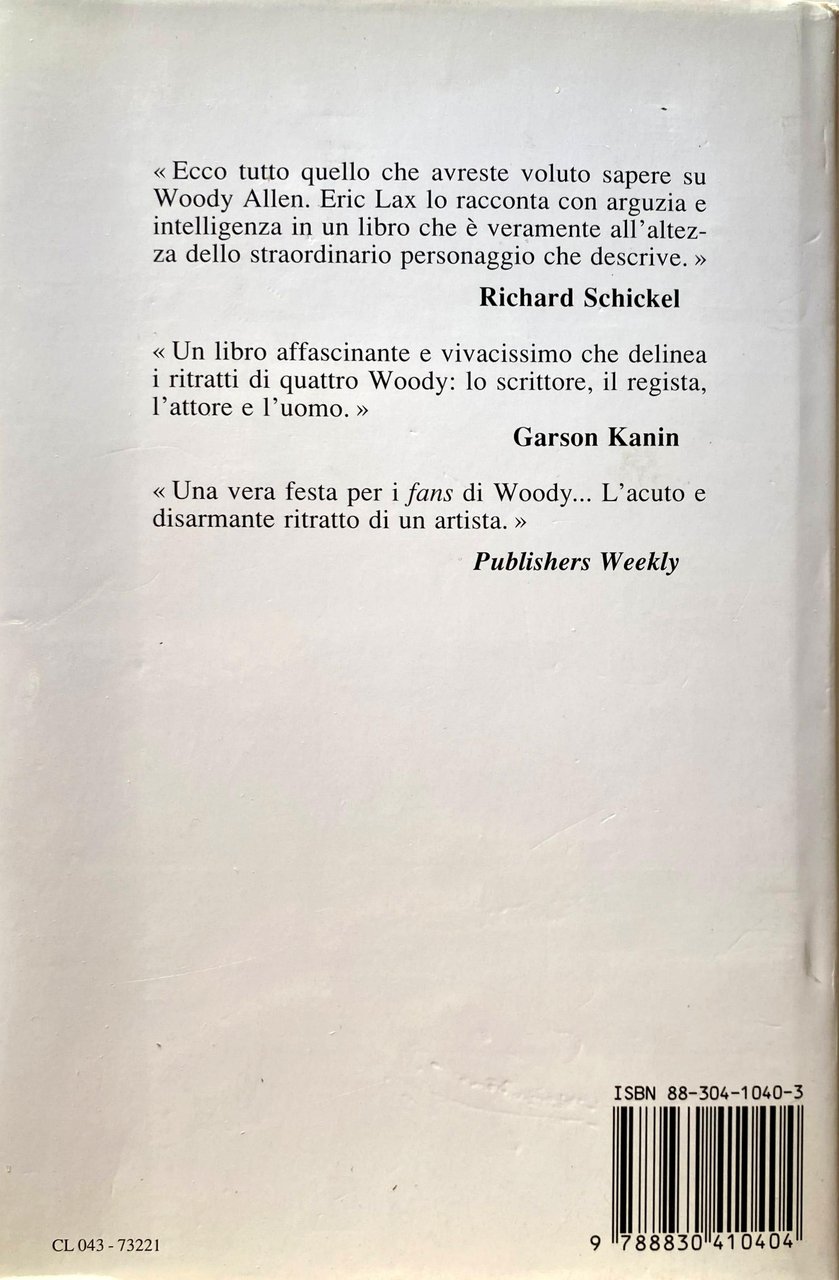 Capelli rossi, sguardo sfuggente dietro le spesse lenti da miope, un fisico in assoluta antitesi a quello di Schwarzenegger, introverso, impacciato, perennemente in difficoltà con il mondo e con le donne: in due parole, Woody Allen. O forse no. Che rapporto può infatti esserci tra quel personaggio che da oltre vent'anni ha dato voce e corpo, sullo schermo cinematografico, alle nostre piccole e grandi paure, alle idiosincrasie mai confessate, al disagio di un universo ostile e incontrollabile, e un uomo che già a sedici anni guadagnava cifre da capogiro inventando battute fulminanti per showmen di scarsa vena e che si è in seguito affermato come comico, scrittore umoristico, musicista, attore, sceneggiatore, regista ed è, inoltre, marito e padre felice? Con questa biografia, Eric Lax, che con infinita pazienza e incrollabile determinazione ha pedinato Woody per oltre vent'anni (inseguendolo da un set all'altro, raccogliendo confidenze e confessioni, condividendo con lui momenti pubblici e privati), cerca di stabilire un nesso tra questi due aspetti apparentemente inconciliabili del pianeta Woody Allen. Si delinea così il ritratto veritiero e sorprendente di un uomo complesso e ricco di contraddizioni (Sono molto restio a fare della pubblicità, dichiarò, e invece...), di un regista geniale quanto puntiglioso e ossessivo (al punto di rigirare da capo un film se non lo soddisfa), di un individuo schivo e sensibile che non ha mai potuto fare a meno di raccontare sullo schermo le sue storie d'amore (con Louise Lasser, Diane Keaton, Mia Farrow...). Legati strettamente dal filo rosso (e a volte sardonicamente nero) dello humour alleniano, gli aneddoti dell'infanzia (raccontati da amici e parenti) si alternano alle incredibili vicende che segnarono gli esordi di Woody come comico, le traversie e i piccoli drammi che accompagnano immancabilmente ogni nuovo film si fondono con le tenere manifestazioni d'affetto per i suoi figli, in una girandola così variopinta e imprevedibile da lasciarci stupiti. E se poi Woody sostiene: Ho un solo rimpianto nella vita: non essere qualcun altro, non ci sta forse preparando qualche nuova, sconvolgente sorpresa?
