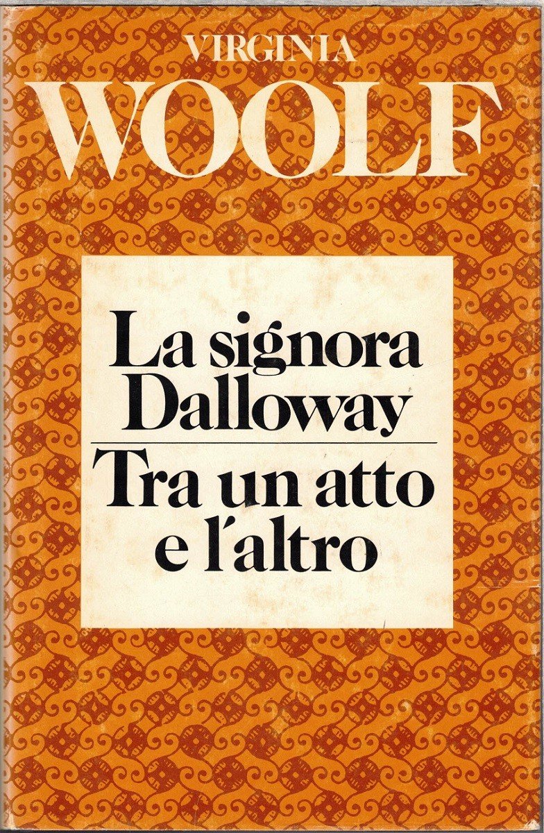 Virginia Woolf, La signora Dalloway – Tra un atto e l’altro, Club del Libro, s.l. (ma stampato a Cles, presso la Nuova Stampa Mondadori) 1982, pp. 325, cm 21, cart. ed. con titoli al dorso e sovraccoperta. Edizione Club del Libro su licenza della Arnoldo Mondadori Editore e della Ugo Guanda Editore. Titoli originali: Mrs. Dalloway – Between the acts. Traduzioni di Alessandra Scalero, Francesca Wagner e Franco Cordelli. Lievissima brunitura della carta, per il resto perfetto.
