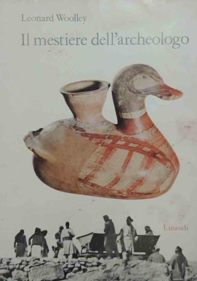 Leonard Woolley, Il mestiere dell’archeologo, Giulio Einaudi editore, s.l. (ma stampato a Torino, presso la Tipografia Toso) 1957, seconda ed., pp. 195, ill. b.n., 16 c. di tavv. f.t. ill. b.n., cm 22, cart. ed. con sovraccoperta. Collana Saggi, n. 220. Titolo originale: Spadework. Traduzione di Giuliana Lenghi Balestra. Tracce d’uso alla sovraccoperta che si presenta parzialmente attaccata al piatto posteriore (causa gora esterna) e riporta strappetti e piccoli rinforzi interni, per il resto minime fioriture, lieve bruinitura delal carta, ma volume in buono stato con interno integro, pulito e ben conservato.