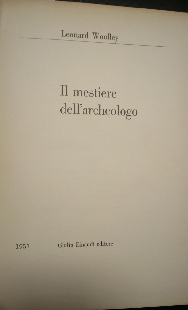 Woolley Leonard, Il mestiere dell'archeologo, Einaudi, 1957, in-8, cartonato, pp. 194, ottimo.