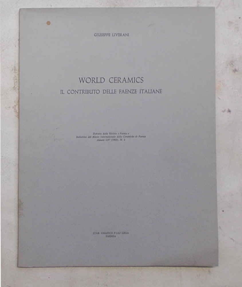 In 8° (cm. 24,5 x 19); pagg. (19); con 14 tavv. fotograf. f.t.; leggera carton. origin. VG. ** Estratto originale dalla rivista "Faenza", Bollettino del Museo Internazionale delle Ceramiche di Faenza.