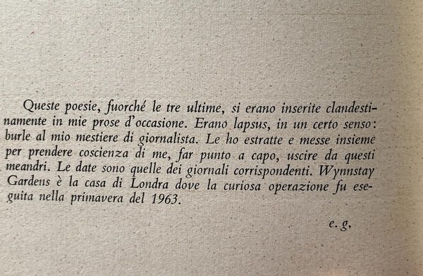 Soggetti: Poesie, Narrativa italiana, Letteratura, Libri Vintage Fuori catalogo, Poeti giornalisti italiani, Romanticismo, Antologie, Raccolte poetiche, Libri rari, Anni Sessanta, Collezionismo, Carlo Betocchi, Mario Luzi, Intellettuali, Studi letterari, Scritti giovanili, Burle, Kensington, Viaggio, Anabasi in Africa, Prose d'occasione, Abruzzi, Paestum, Memorie, Mantova, Casa di Londra, Notte d'estate, Piossasco, Amalfi, Treni, Lapsus, Poesia civile e politica, Novecento, Poems, Italian fiction, Literature, Out of print books, Italian journalist poets, Romanticism, Anthologies, Poetry collections, Rare books, Sixties, Collecting, Intellectuals, Literary studies, Youth writings, Travel, Occasional prose, Memories, Mantua, London house, Summer night, kidneys, Civil and political poetry, Twentieth century