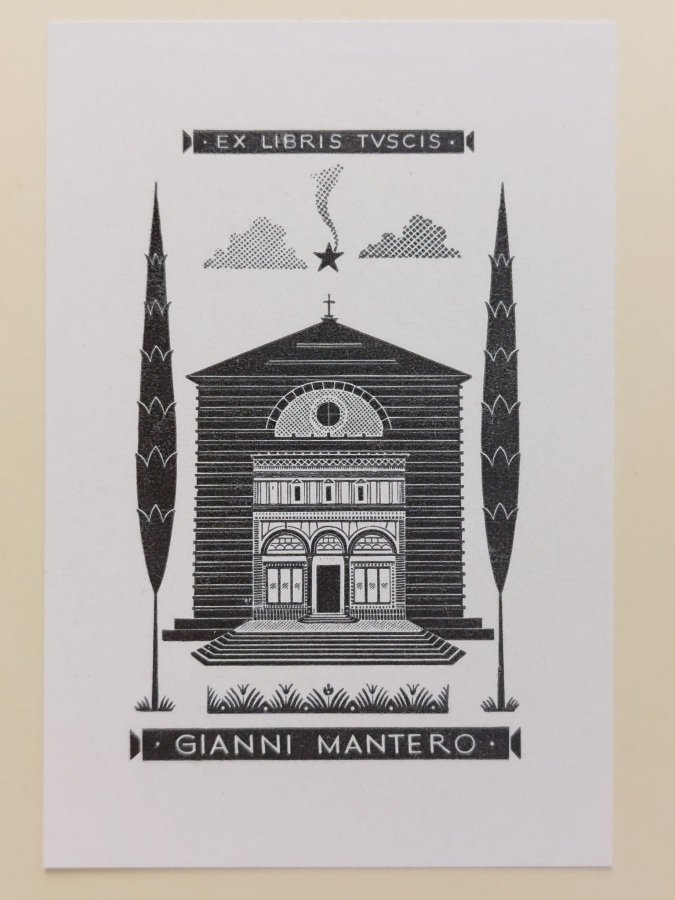 In-8° (cm. 23,8), 16 carte sciolte non numerate allo stato di nuovo, di cui 14 con graziosi Ex Libris incisi da artisti italiani applicati. Bell'insieme compilato da Luigi Angelini, Salvatore Bono, Gianni Mantero, Tranquillo Marangoni e Nerone Santagiuliana. In cartella editoriale a stampa avorio con silografia e titoli in nero al piatto. Esemplare allo stato di nuovo. (NX)