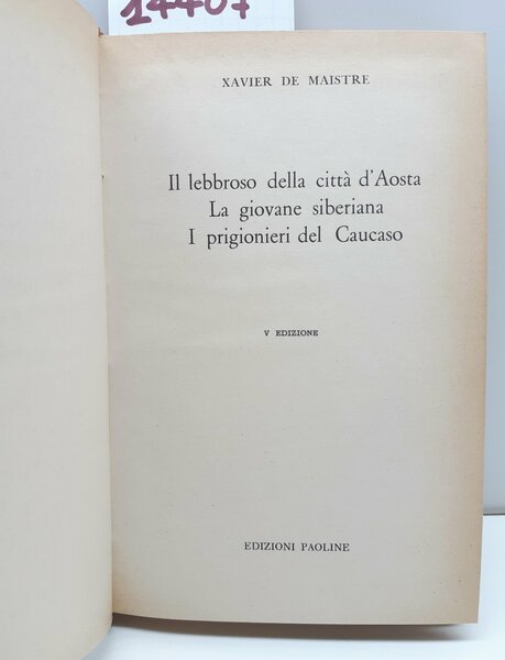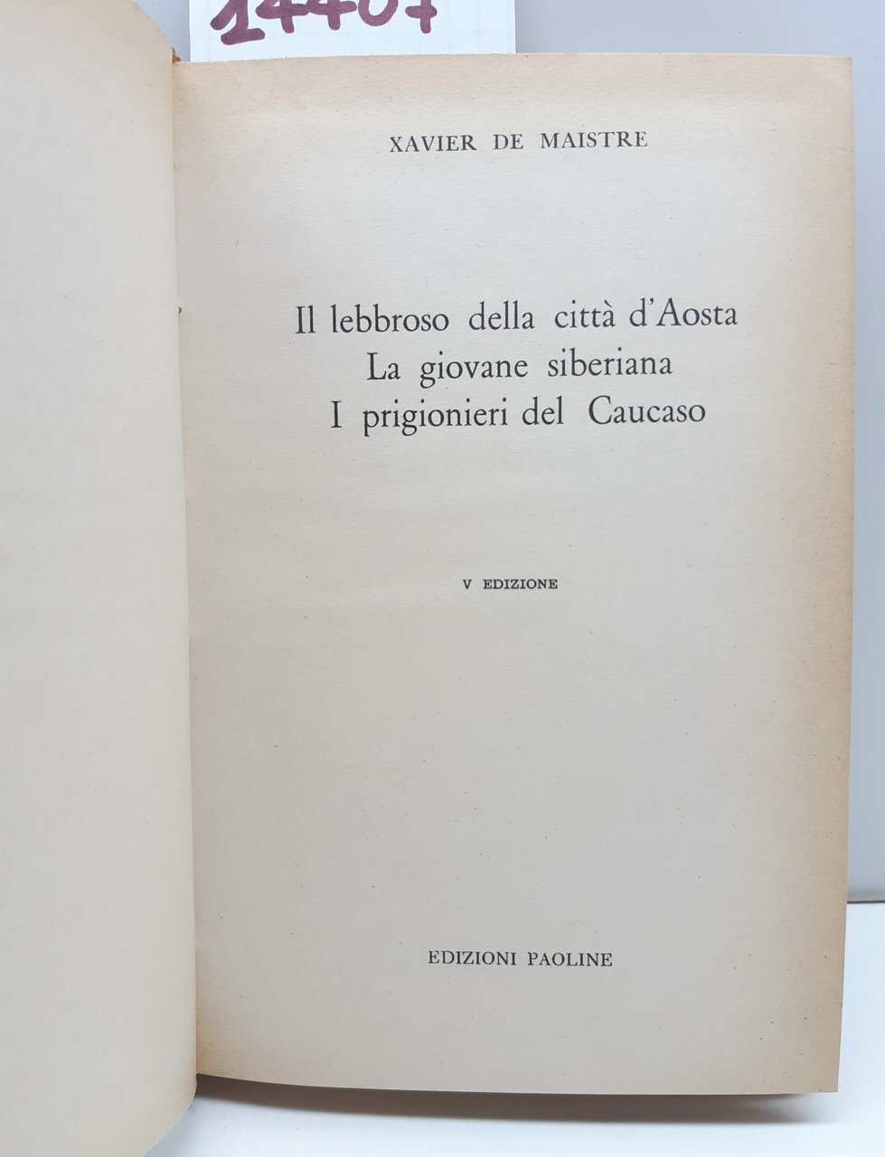 X. Maistre Il lebbroso della città d'Aosta La giovane siberiana I Prigionieri del Caucaso 5° ed. Paoline 1963