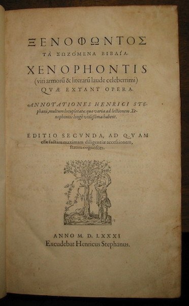 Xenophontis quae extant opera. Annotationes Henrici Stephani. Editio secunda ad quam esse facta maximam diligentiae accessionem statim cognosces