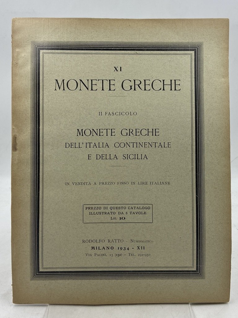 XI. MONETE GRECHE. II FASCICOLO. MONETE GRECHE DELL’ITALIA CONTINENTALE E DELLA SICILIA. Milano, Rodolfo Ratto Numismatico 1934.