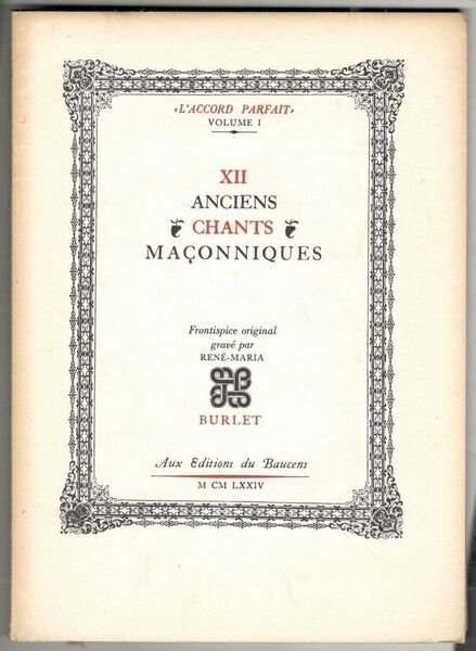 XII anciens chants maçonniques. Frontispice original gravé par René-Maria Burlet