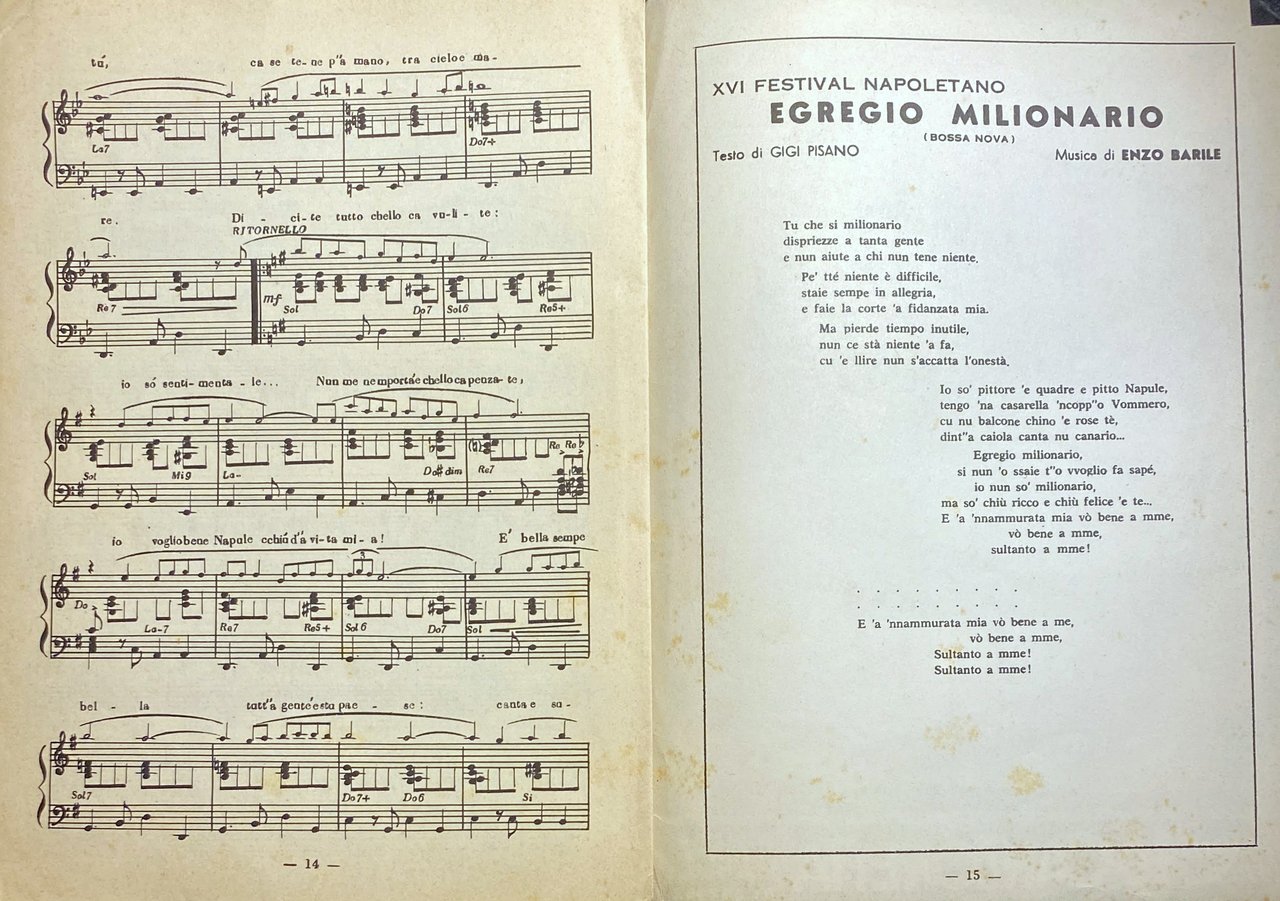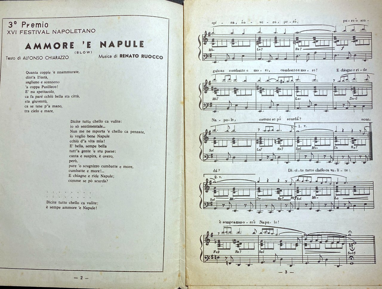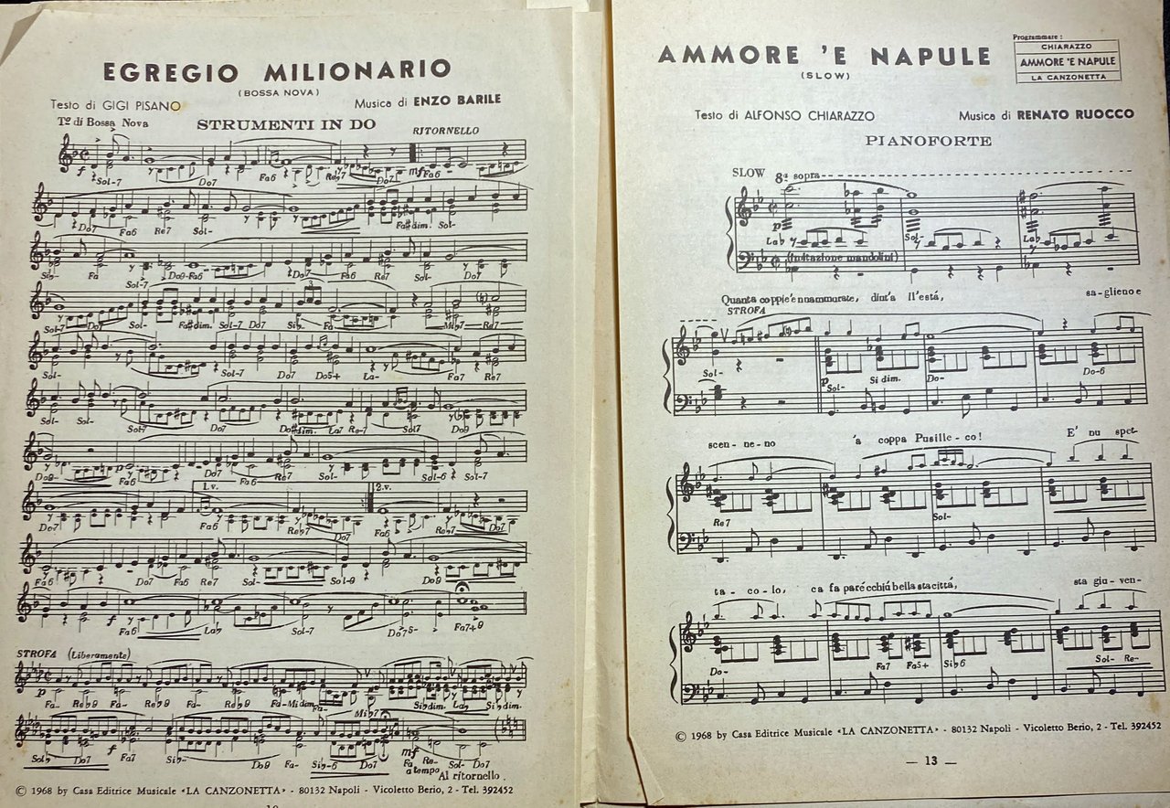 - Canzone napoletana, Napoletanità, Collezionismo cartaceo, Spartiti musicali, Musica, Dialetto napoletano, Memorie, Testi, Canzoni, Festival, Teatro, Collezionismo, Spartiti, Libri Vintage, Orchestra, Cantanapoli, Cantautori napoletani, Cantanti, Anni Sessanta, Da collezione, Raccolte Vintage, Pubblicità, Advertising, Melodici, Classici, Bossa Nova, Strumenti, Pianoforte, Trasmissioni Rai, Feste, Tradizioni culturali locali, Rarità