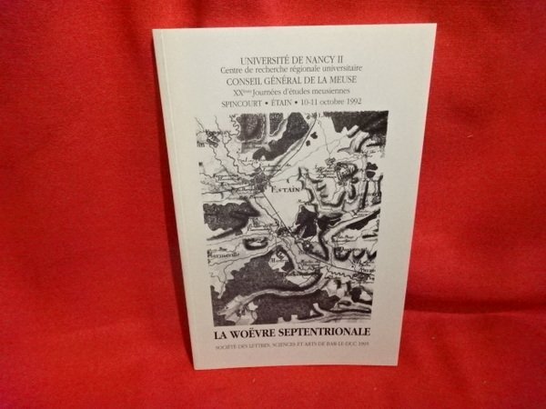 Bar-le-Duc, Société des Lettres, Sciences et Arts de Bar-le-Duc, 1995; in-8, 164 pp., broché. Actes réunis par Jean LANHER et Noëlle CAZIN. Sommaire : Jean LANHER : Introduction, p. 3./ Patrice GAMEZ : la Woëvre septentrionale, un pays de Lorraine, p. 5./ Maurice NOËL : l'Originalité du Pays-Haut en Lorraine, p. 15./ Jacques MOURIER : la Démographie dans la région d'Étain à la fin du Moyen Âge, p. 43./ Michel MAIGRET : les « Taques » de Lopigneux, p. 55./ Marie-Ange GLESSGEN : le Marquisat de Spincourt au XVIIIème siècle : histoire familiale et patrimoniale d'un fief lorrain (1722-1818), p. 71./ Jean-Paul STREIFF : Étain en 1789, p. 85./ Michel MAIGRET : la Communauté juive d'Étain, p. 95./ Roger MALHER : la Place de Spincourt dans la vie et l'oeuvre de Louis Bertrand, p. 109./ Jean LANHER : Louis Bertrand : la Lorraine du Nord - Paysages, habitat et gens - d'après « Jean Perbal », p. 119./ François ROTH : l'Invasion allemande dans le nord de la Woëvre (août-octobre 1914), d'après le journal inédit d'Eugénie Barthélémy, p. 131./ Évelyne ARNOULD-BANTQUIN ; la Woëvre du nord, après trois décennies de difficultés économiques, p. 147. Nombreuses illustrations en noir et blanc.
