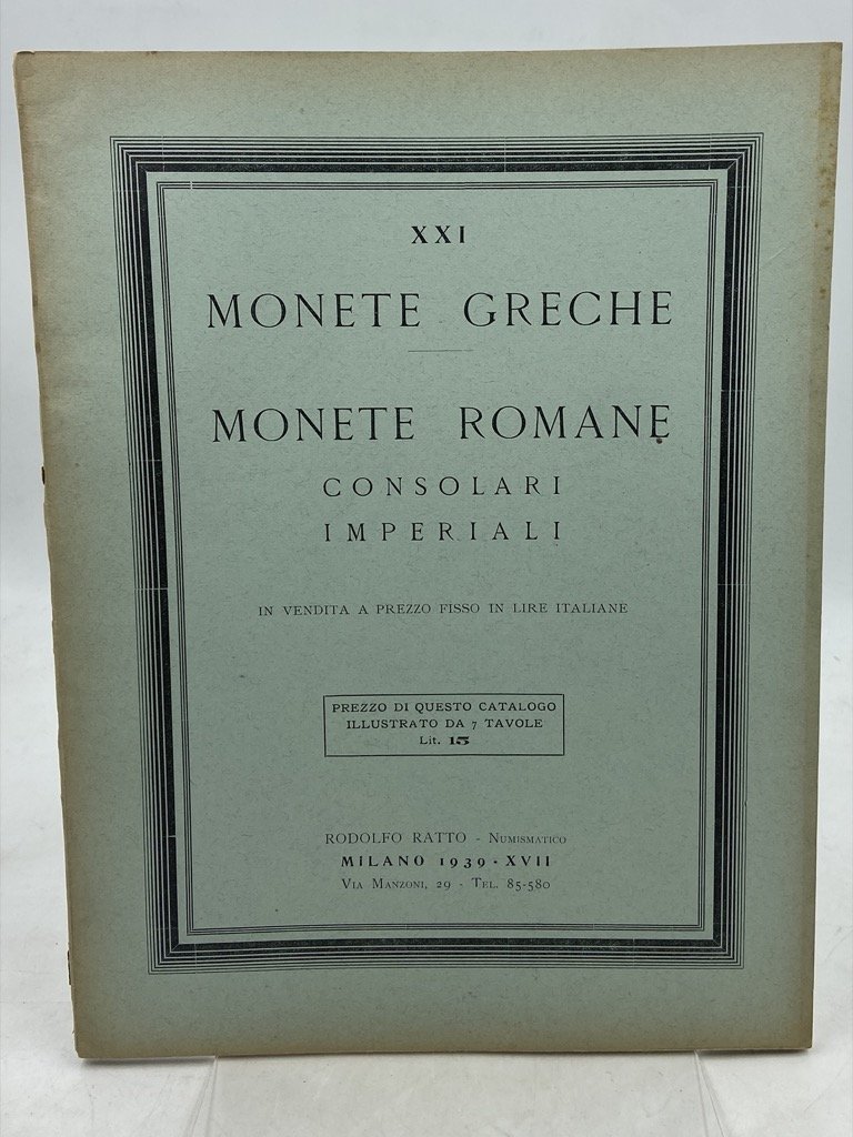 XXI. MONETE GRECHE. MONETE ROMANE CONSOLARI IMPERIALI. Milano, Rodolfo Ratto Numismatico 1939.