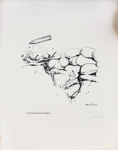 Abel Jules Faivre (Lione 1867 - Nizza 1945) Litografia originale firmata a mano dall'artista.Dimensioni: 56 x 38,5 cmCon certificato di autenticità C.O.A.Ingiallimento laterale come da foto.Esemplare numero 62/250 La raccolta di litografie umoristiche del caricaturista francese Abel Faivre (Lione 1867-Nizza 1945), andata a confluire nel volume Jours de guerre,fu pubblicata in due tomi tra il 1915 e il 1919. Con il procedere del conflitto, l'opinione pubblica di tutti i paesi coinvolti,che aveva dapprima affrontato tale evento con ottimismo, mutò rapidamente opinione sino a considerare la guerra, senza mezzi termini,come un avvenimento rovinoso. In tale contesto, le vignette satiriche di guerra possedevano un potente effetto catartico,adempivano un ruolo sociale irrinunciabile, fornendo una valvola di sfogo all’incombere dal più cupo pessimismo. Abel Jules Faivre (Lyon 1867 - Nizza 1945) Originale Lithographie vom Künstler von Hand signiert.Abmessungen: 56 x 38,5 cmMit Echtheitszertifikat C.O.A.Seitliche Vergilbung wie auf dem Foto.Kopieren Sie die Nummer 62/250 Die Sammlung humorvoller Lithographien des französischen Karikaturisten Abel Faivre (Lyon 1867-Nizza 1945), die in den Band Jours de guerre floss,es wurde zwischen 1915 und 1919 in zwei Bänden veröffentlicht. Im Verlauf des Konflikts wurde die öffentliche Meinung in allen beteiligten LändernWer dieses Ereignis anfangs mit Optimismus konfrontiert hatte, änderte schnell seine Meinung, um den Krieg ohne Zweifel zu betrachten.wie ein ruinöses Ereignis. In diesem Zusammenhang hatten die satirischen Kriegskarikaturen eine starke kathartische Wirkung.Sie erfüllten eine unverzichtbare soziale Rolle und bildeten ein Entlastungsventil gegen den dunkelsten Pessimismus. Abel Jules Faivre (Lyon 1867 - Nice 1945) Lithographie originale signée à la main par l'artiste.Dimensions: 56 x 38,5 cmAvec certificat d'authenticité C.O.A.Jaunissement latéral comme sur la photo.Copie numéro 62/250 La collection de lithographies humoristiques du caricaturiste français Abel Faivre (Lyon 1867-Nice 1945), qui allait se fondre dans le volume Jours de guerre,il a été publié en deux volumes entre 1915 et 1919. À mesure que le conflit progressait, l'opinion publique de tous les pays impliqués,qui avait d'abord fait face à cet événement avec optimisme, a rapidement changé d'avis pour envisager la guerre, en termes non équivoques,comme un événement ruineux. Dans ce contexte, les caricatures de guerre satiriques ont eu un puissant effet cathartique,ils remplissaient un rôle social indispensable, fournissant une soupape de décharge du pessimisme le plus sombre. Abel Jules Faivre (Lyon 1867 - Nice 1945) Original lithograph signed by hand by the artist.Dimensions: 56 x 38.5 cmWith certificate of authenticity C.O.A.Lateral yellowing as in the photo.Copy number 62/250 The collection of humorous lithographs by the French caricaturist Abel Faivre (Lyon 1867-Nice 1945), which went to flow into the volume Jours de guerre,it was published in two volumes between 1915 and 1919. As the conflict progressed, public opinion in all the countries involved,who had initially faced this event with optimism, quickly changed his opinion to consider the war, in no uncertain terms,like a ruinous event. In this context, the satirical war cartoons had a powerful cathartic effect,they fulfilled an indispensable social role, providing a relief valve from the darkest pessimism.