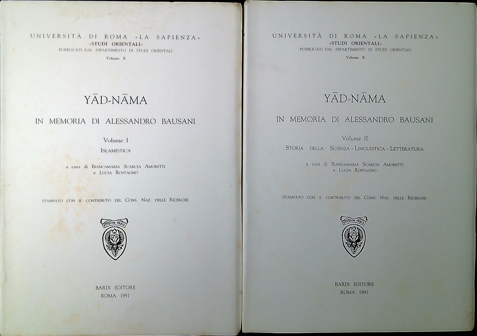 Yād-nāma : in memoria di Alessandro Bausani. Due volumi
