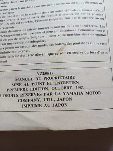 Yamaha YZ 250 J 5X5 1981 manuale uso - officina riparazione originale